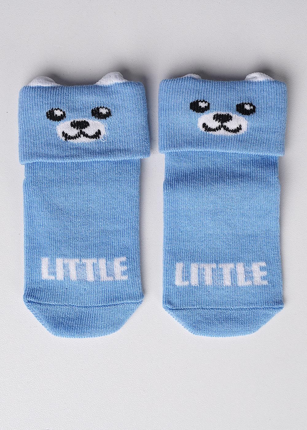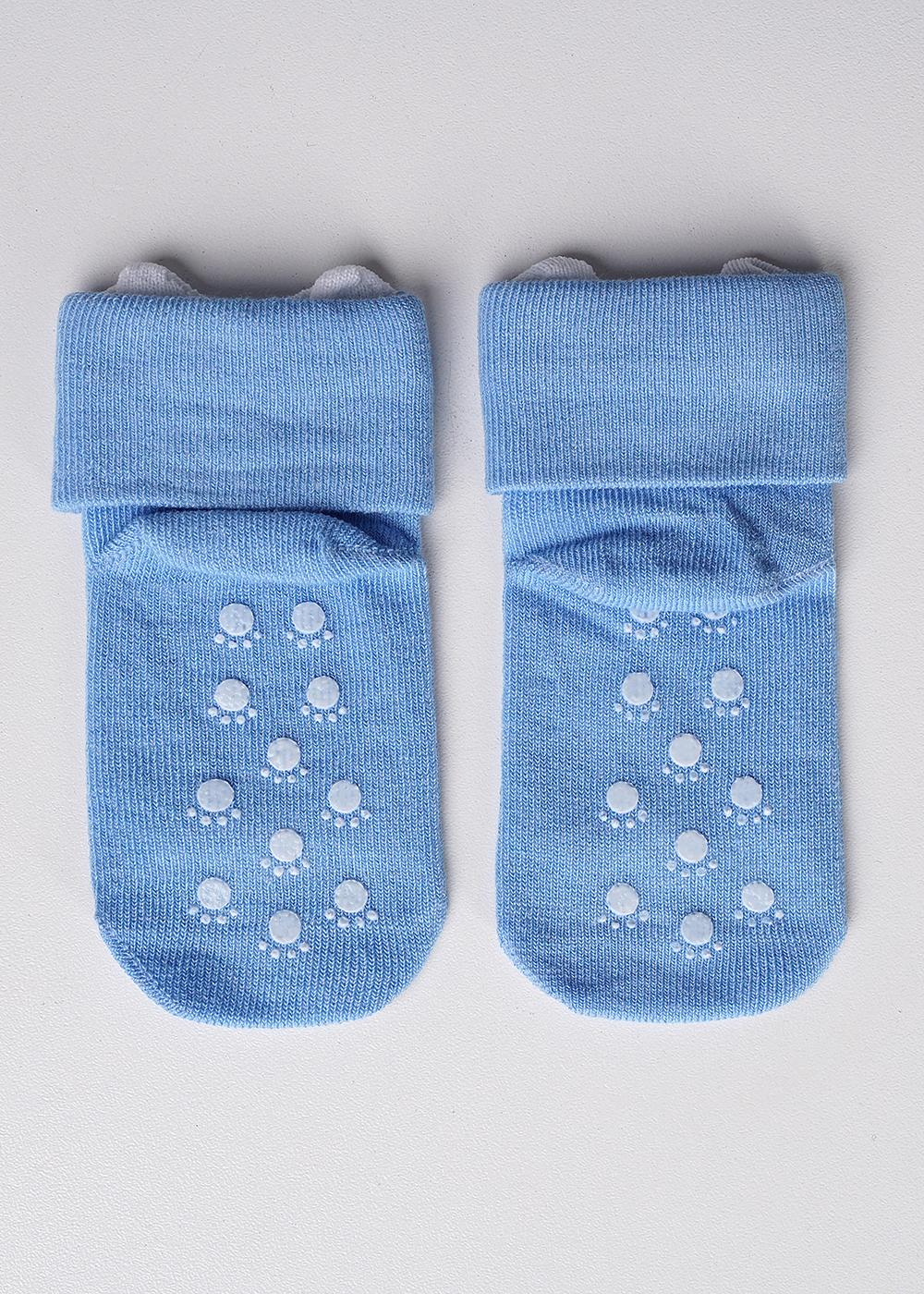 ясельные носки для мальчика с мордочкой мишки и 3Д ушками, по следу нанесены силиконовые "стоперы"
