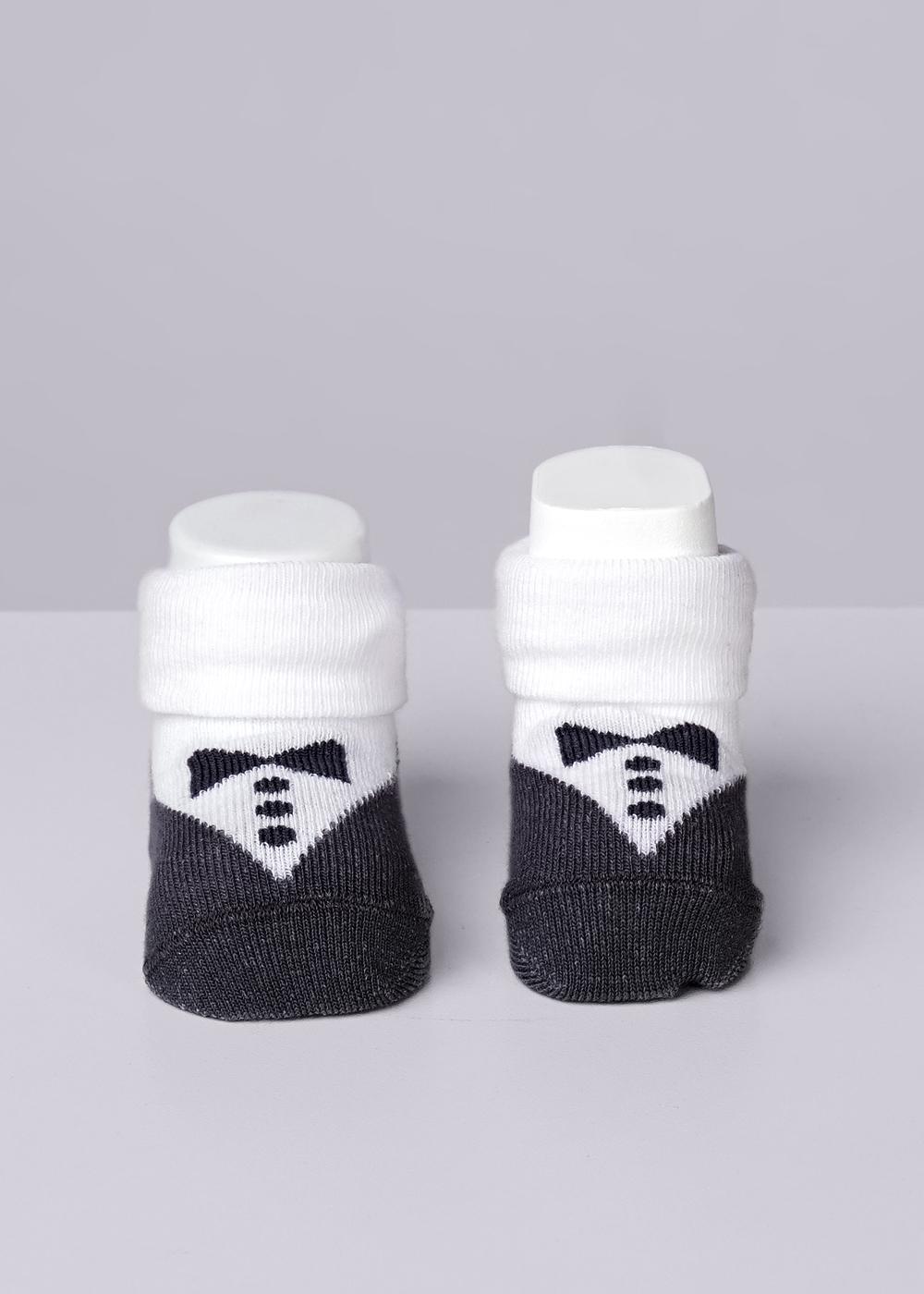 Носки ясельные со стильным рисунком- "джентельмен" имитирующий фрак и бабочку