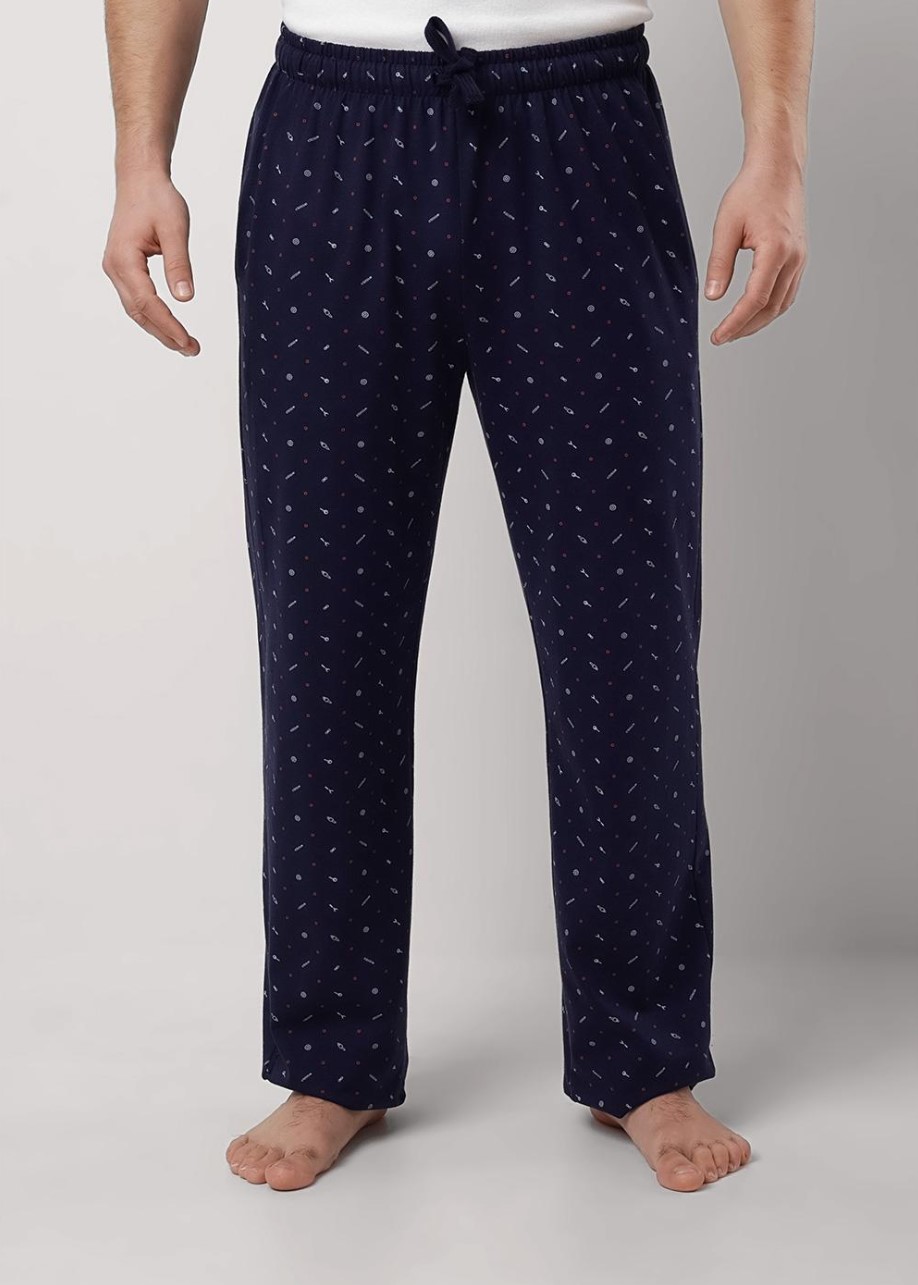 Домашние брюки немного зауженные к низу, из трикотажного полотна в набивку. Мягкие и комфортные, прекрасно держат форму и не сковывают движений. Функциональности модели придают карманы и регулируемый шнур. Создай свой образ вместе с брюками clever .