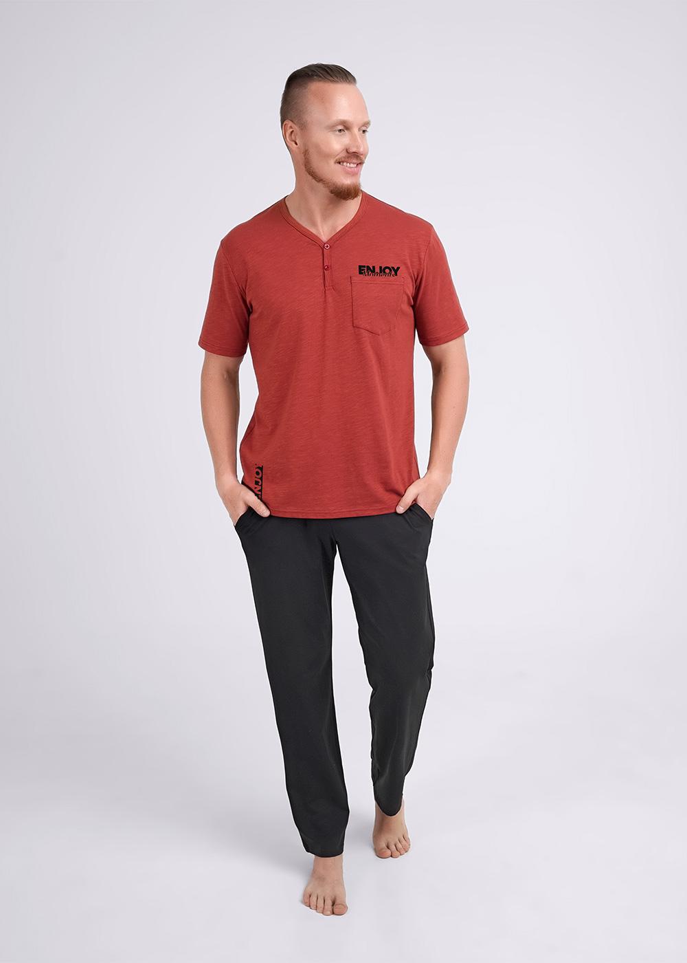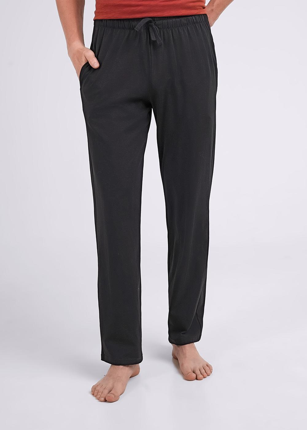 Домашние брюки немного зауженные к низу, из трикотажного полотна с небольшим добавлением эластана для прочности. Мягкие и комфортные, прекрасно держат форму и не сковывают движений. Функциональности модели придают карманы и регулируемый шнур.