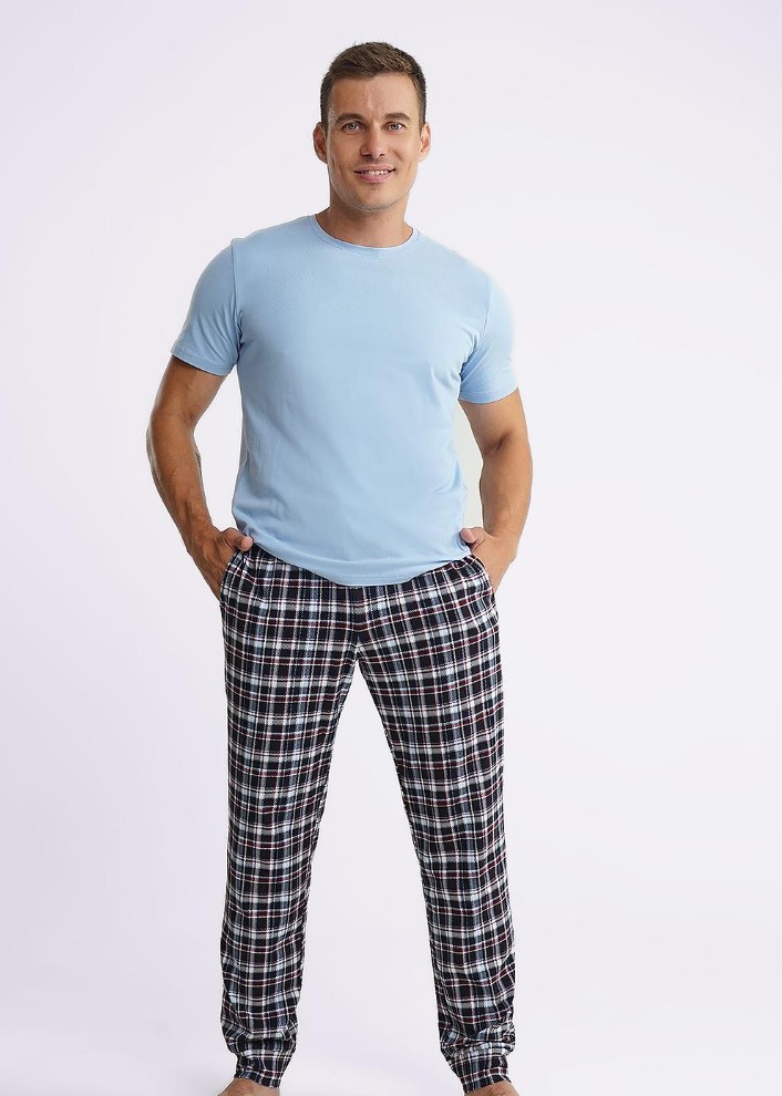 Мужские домашние брюки на манжете, в оригинальную набивку из трикотажного полотна с карбоном. Комфортные и стильные клетчатые брюки с функциональными карманами по бокам и регулируемым шнуром - отличное дополнение любого вашего образа.