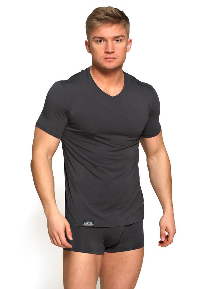 Мужская футболка прямого кроя с V-образным вырезом горловины и короткими рукавами.