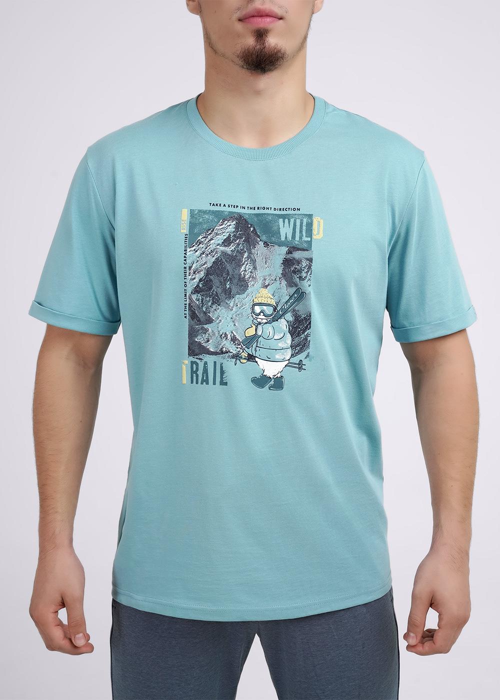Футболка мужская из дышащего хлопкового полотна с округлой горловиной и коротким рукавом. Модель дополнена дизайнерским принтом. Прекрасное решение для создания уютного домашнего образа.