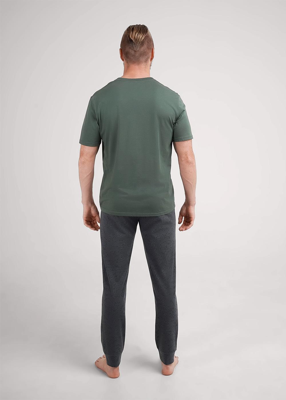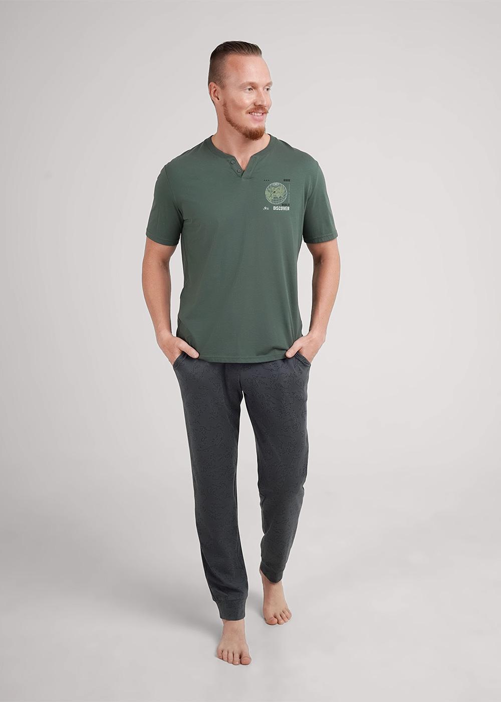 Футболка мужская с коротким рукавом и фигурной горловиной, из дышащего хлопкового полотна. Оригинальность модели придаёт авторский принт. Создай свой стильный образ вместе с домашней футболкой clever.