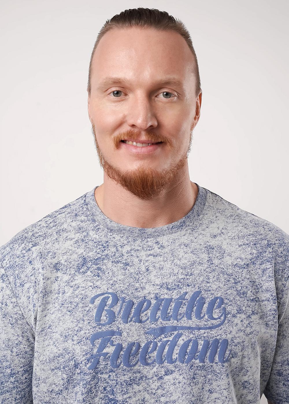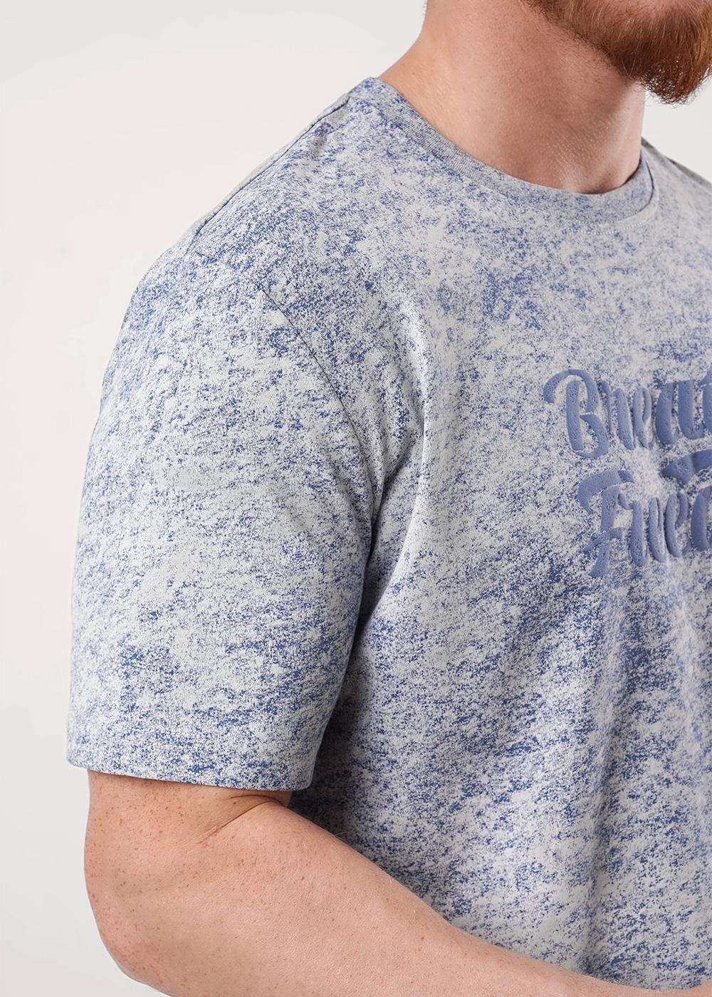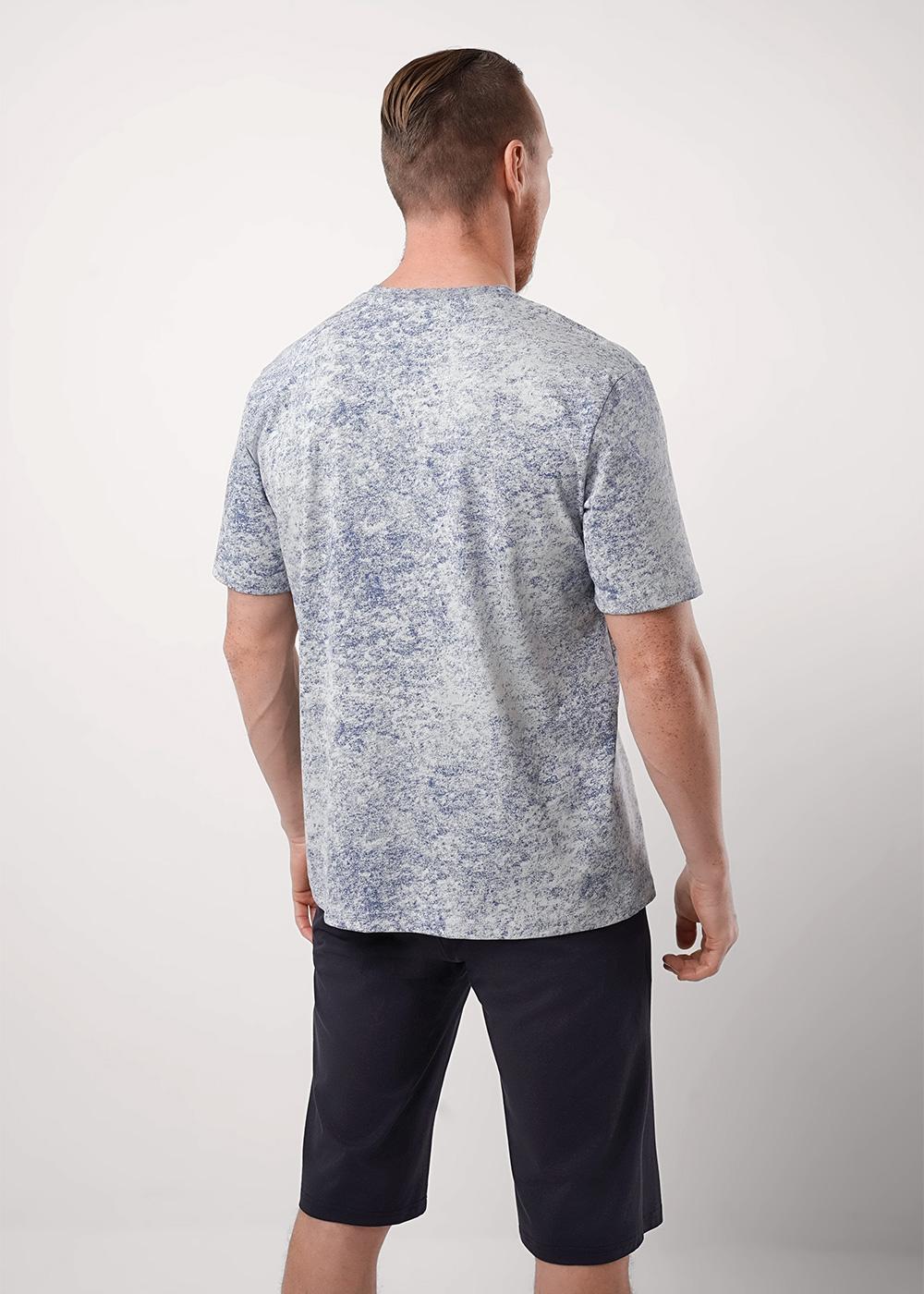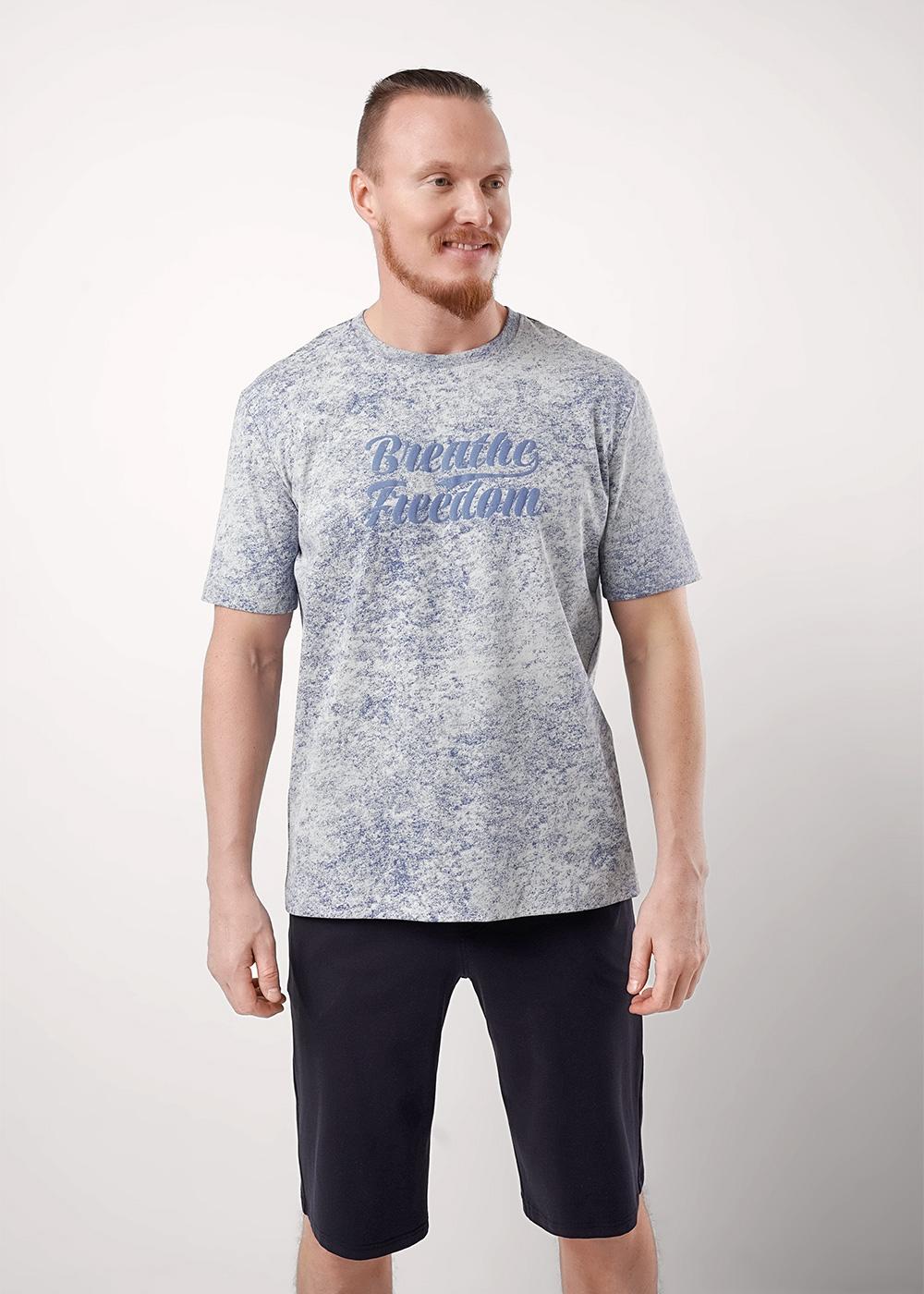 Футболка мужская в набивку из дышащего хлопкового полотна с округлой горловиной и коротким рукавом. Модель дополнена дизайнерским принтом. Прекрасное решение для создания уютного домашнего образа.