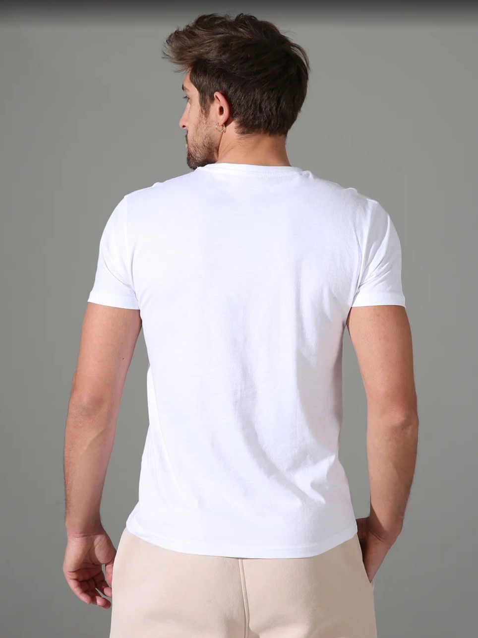 Мужская футболка, белая с коротким рукавом и круглым вырезом. Модель выполнена из качественной ткани, состав хлопок 100%.