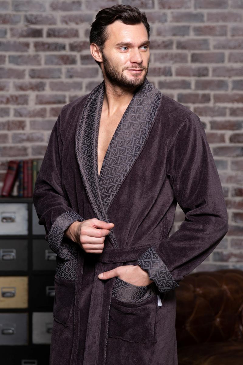 Халат мужской велюровый с шалевым воротником, изготовлен из мягкой ткани Трига/хлопок, внутренняя сторона махра. Плотность 280 г/м.