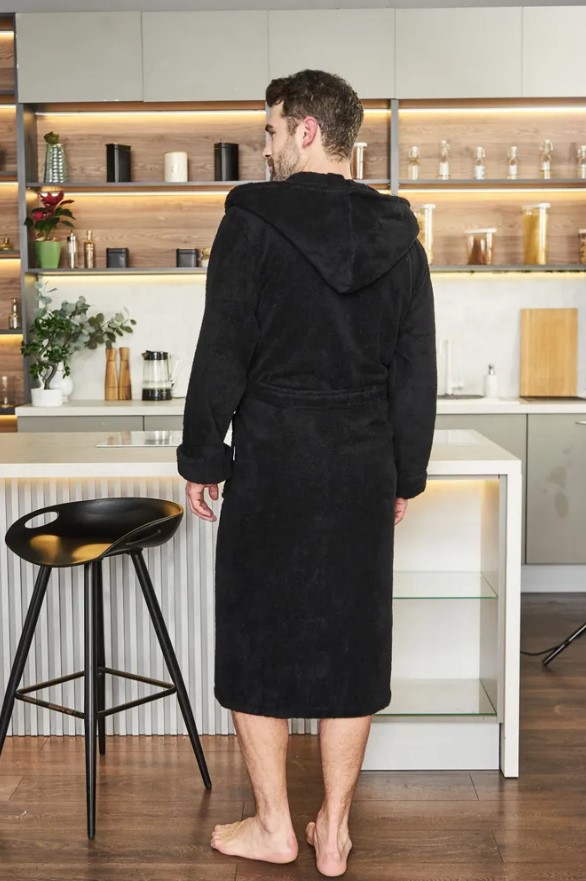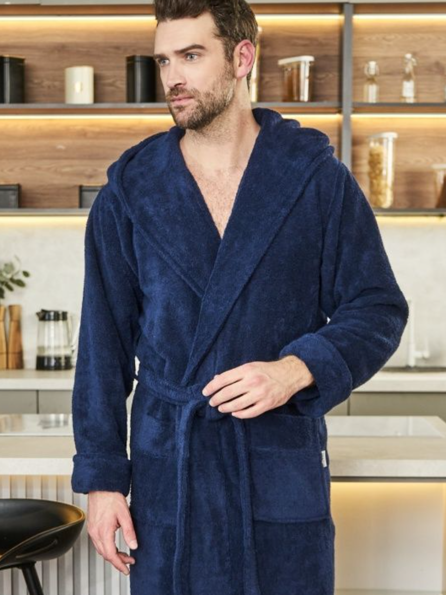 Мужской банный, домашний халат с капюшоном из который изготовлен из нитей высшего качества. Данная модель изготовлена из нитей высшего качества. Фактурная ткань с ненавязчивым жаккардовым рисунком, изготовленная в насыщенных оттенках привнесет торжественности и оригинальности в привычную атмосферу домашнего уюта. Элегантный и стильный халат смотрется шикарно, поэтому ее по достоинству оценят все представителе сильного пола. Мы всегда используем в своих изделиях дорогие высококачественные материалы, поэтому данная модель выполнена из инновационной ткани TRIGA Хлопок: Внутренняя сторона ткани на основе хлопка, поэтому приятна тактильными ощущениями и натуральностью к телу. Лицевая сторона - велюр из микрофибры, придающий халату легкость и необычайную мягкость, что точно не оставит Вас равнодушным к данной моделе. Петельки в ткани надежно закреплены и не поддаются выдергиванию. Халат легко стирается, а также не требует глажки после стирки. Манжеты на рукавах отворачиваемые, регулируемые. Шлевки для пояса двухуро