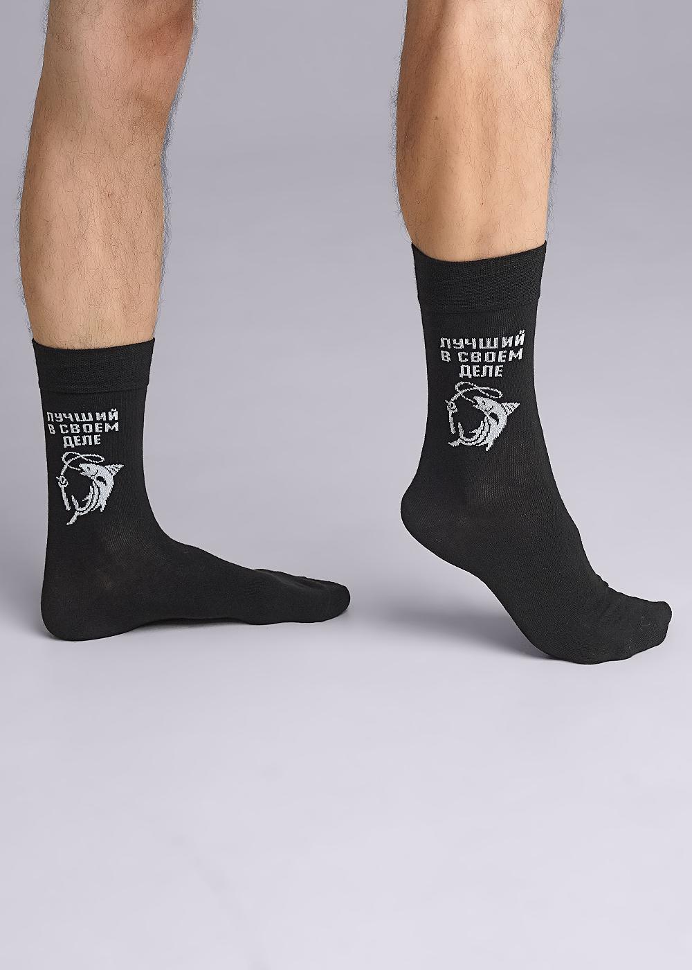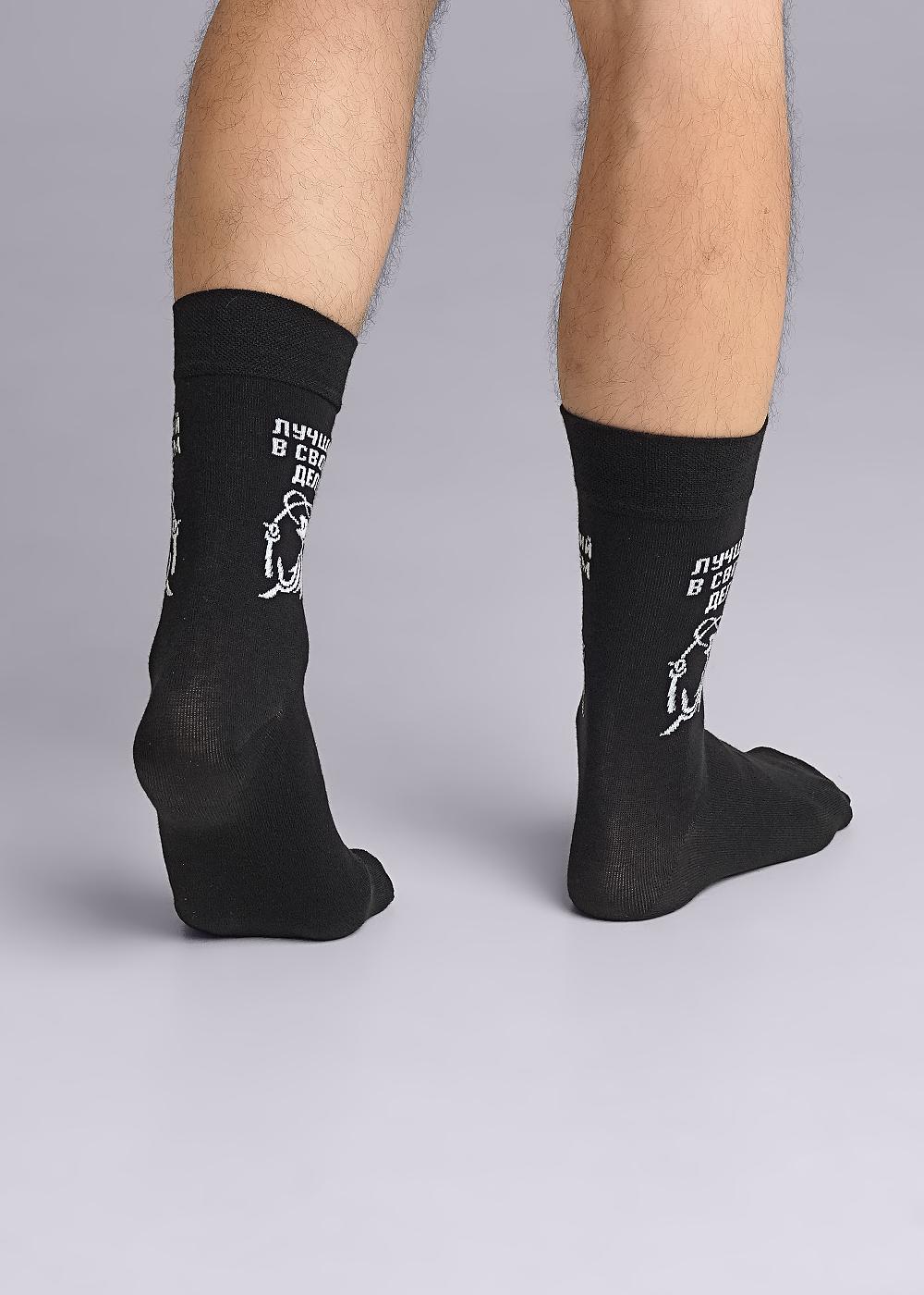 Носок мужской с рисунком и надписью на паголенке "ЛУЧШИЙ В СВОЕМ ДЕЛЕ"