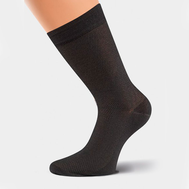Классические мужские носки из тонкой однотонной сетки. Модель удлинённая. Носок и пятка уплотненные, на голени эластичная резинка.