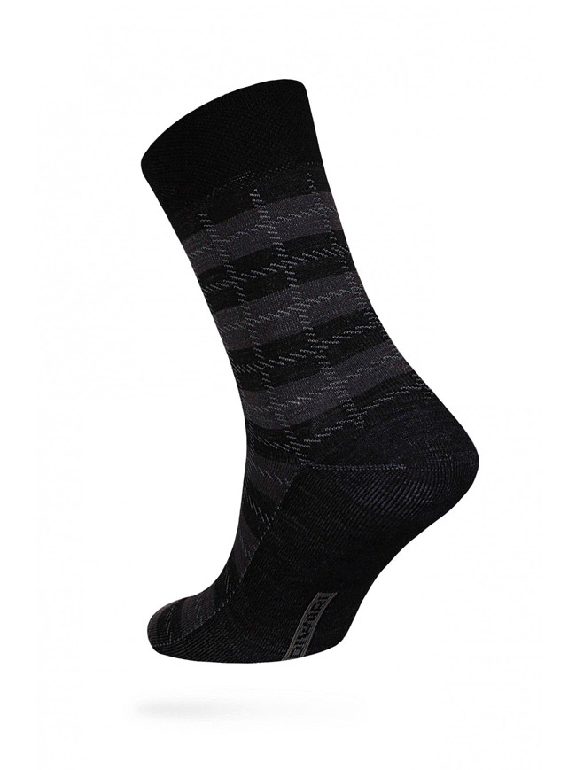 Комфортные теплые мужские носки из шерстяной пряжи, с двойной анатомической резинкой, с рисунками, в полоску.
