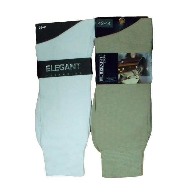Мужские классические носки выполнены из натурального однотонного хлопка с длинной голенью. На голени фиксирующая широкая резинка.