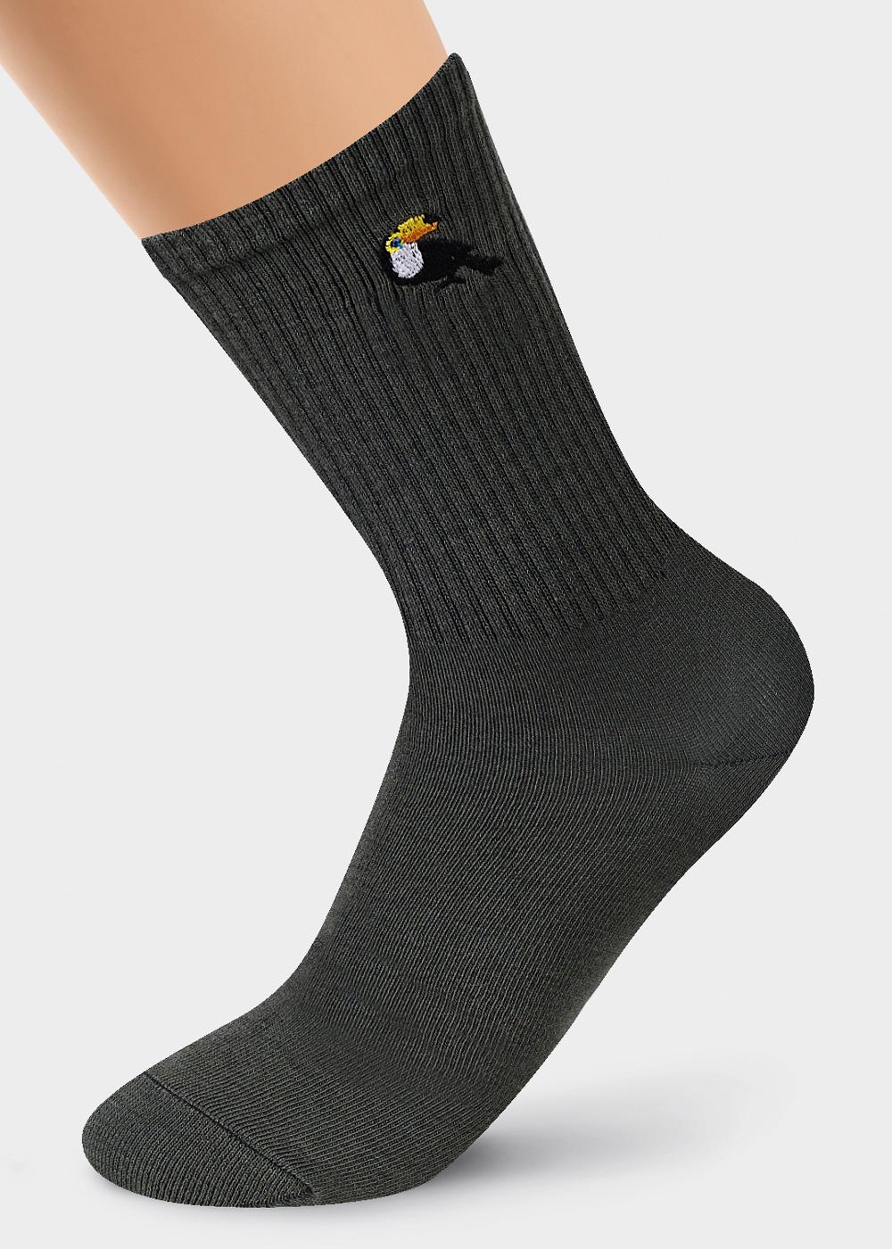 Стильные удлиненные молодежные носки с вышивкой тукан.