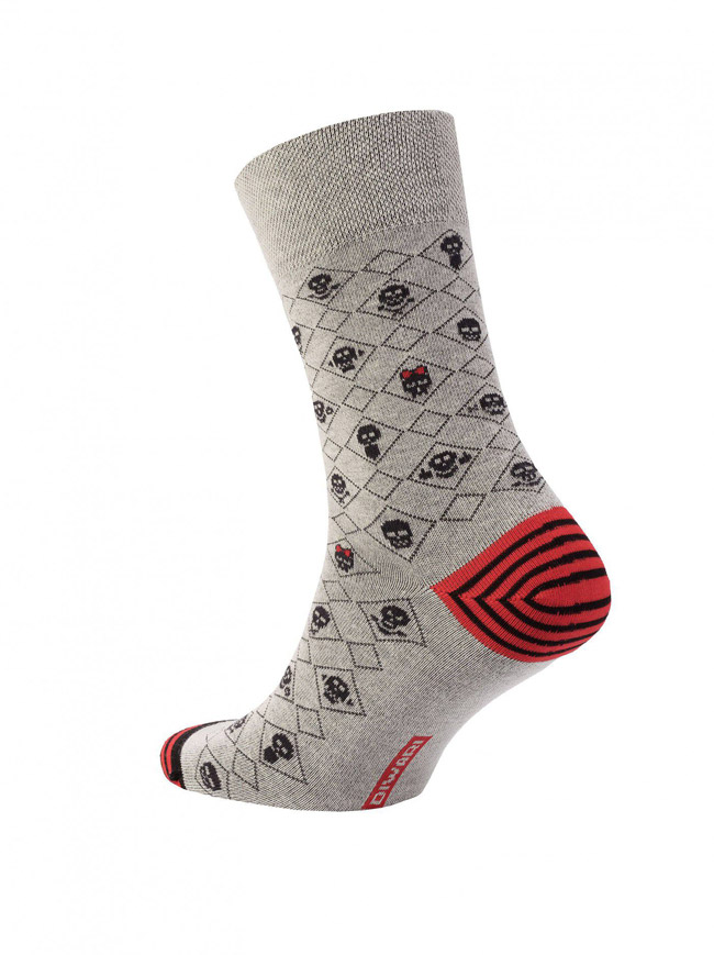 Всесезонные эластичные мужские носки из хлопка, с двойной анатомической резинкой, с тематическими принтами и необычными цветовыми акцентами.