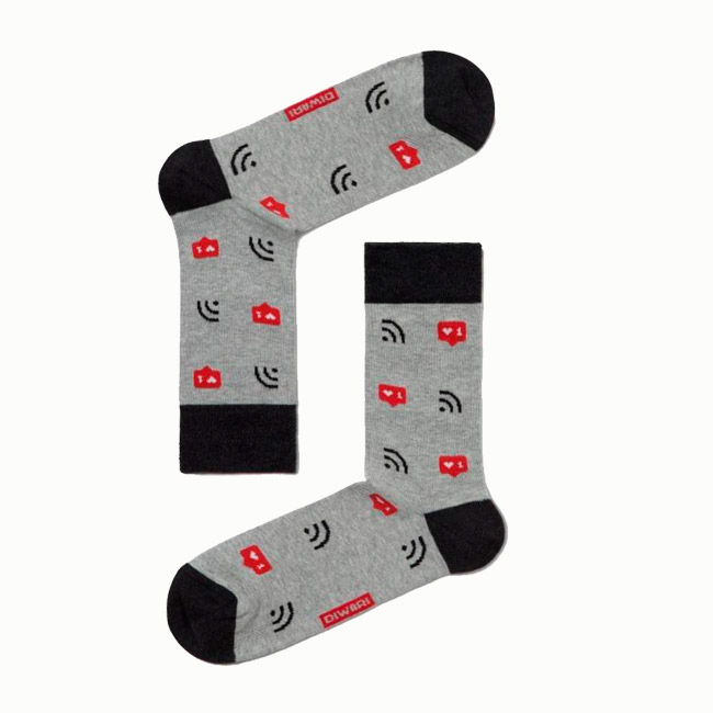 Мужские всесезонные эластичные носки из хлопка серого цвета с добавлением эластичных нитей, с двойной анатомической резинкой, с тематическими рисунками по всей длине. Носок и пятка уплотнены. черного цвета.