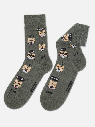Всесезонные эластичные мужские носки из хлопка, с двойной анатомической резинкой, с рисунками с необычными цветовыми акцентами.