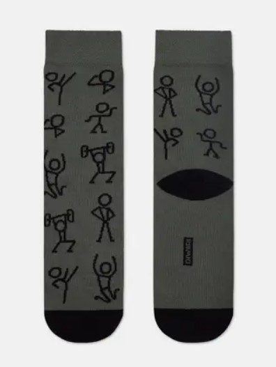 Всесезонные эластичные мужские носки из хлопка, с двойной анатомической резинкой, с рисунками с необычными цветовыми акцентами.