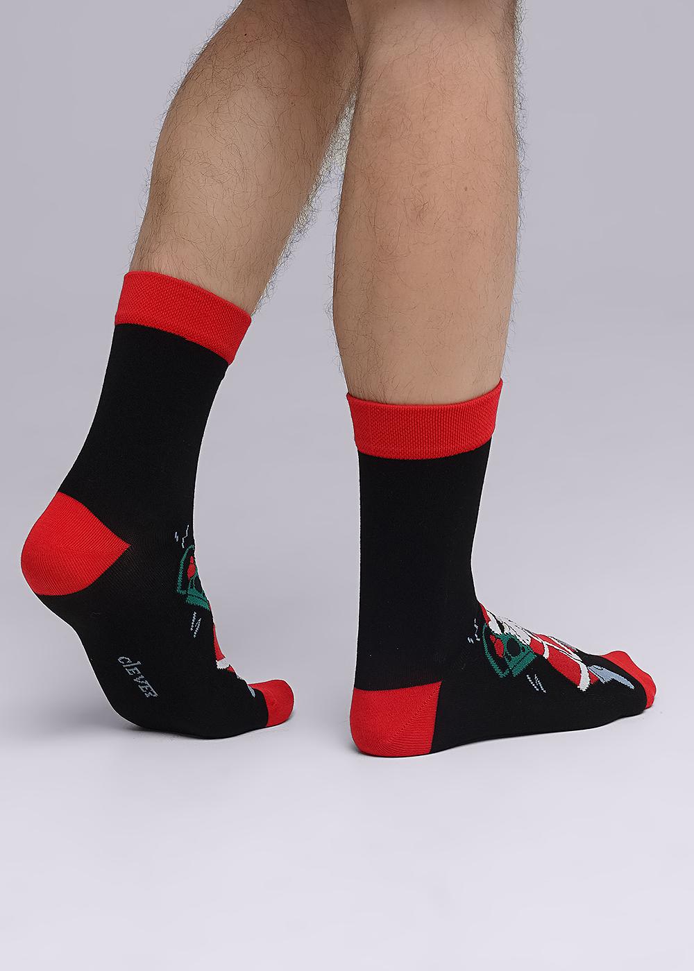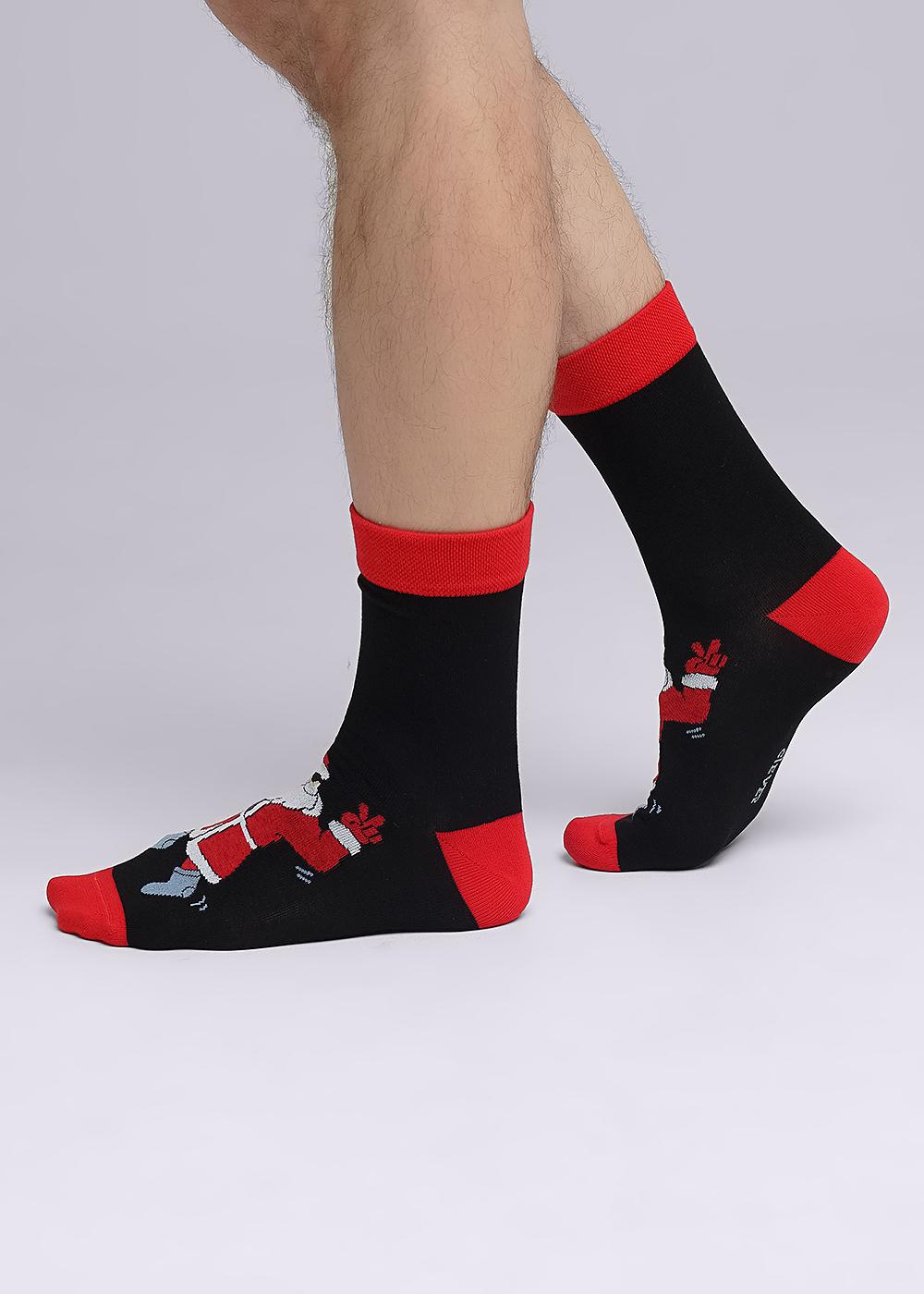 Новогодние мужские носки (гладь) рисунок " Дед Мороз с магнитфоном"