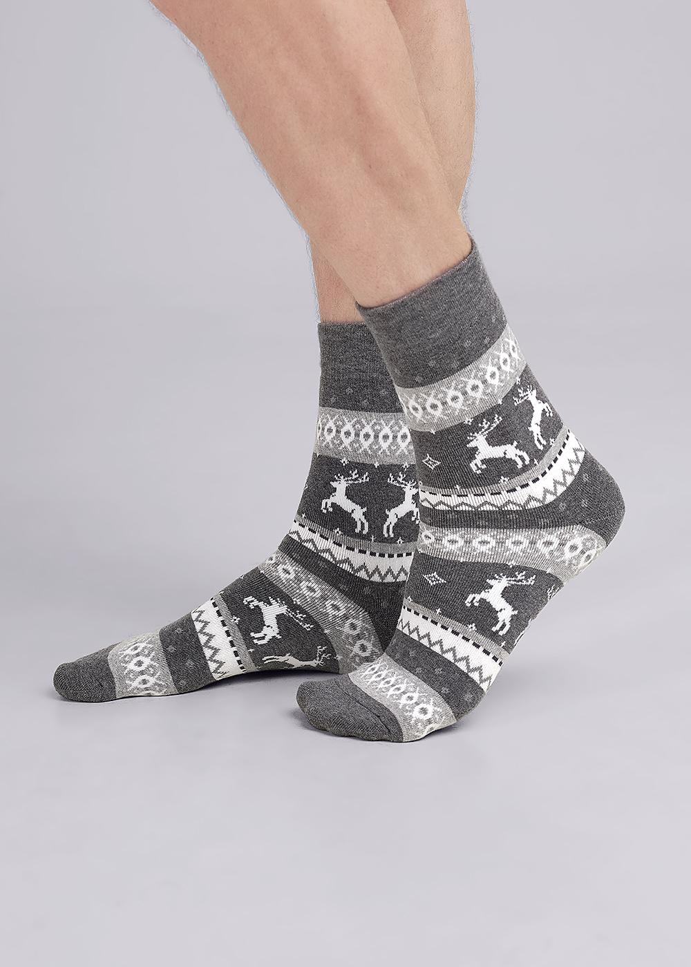 Мягкие плюшевые Новогодние мужские носки со скандинавским орнаментом.