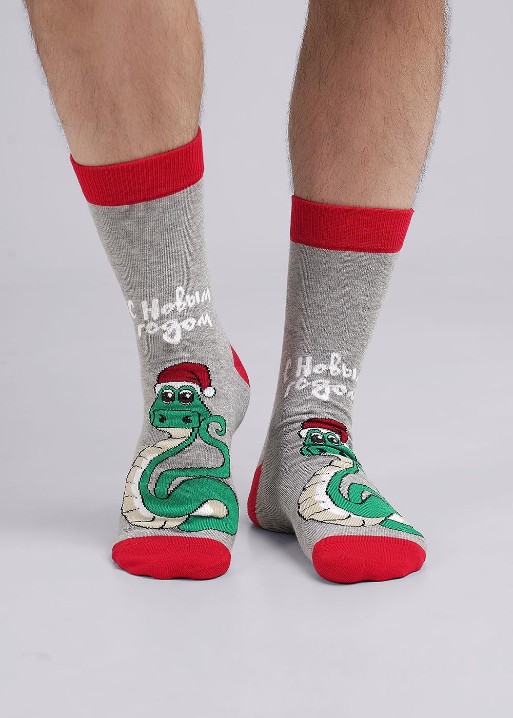 Мужские новогодние носки с рисунком змея и надписью с новым годом.