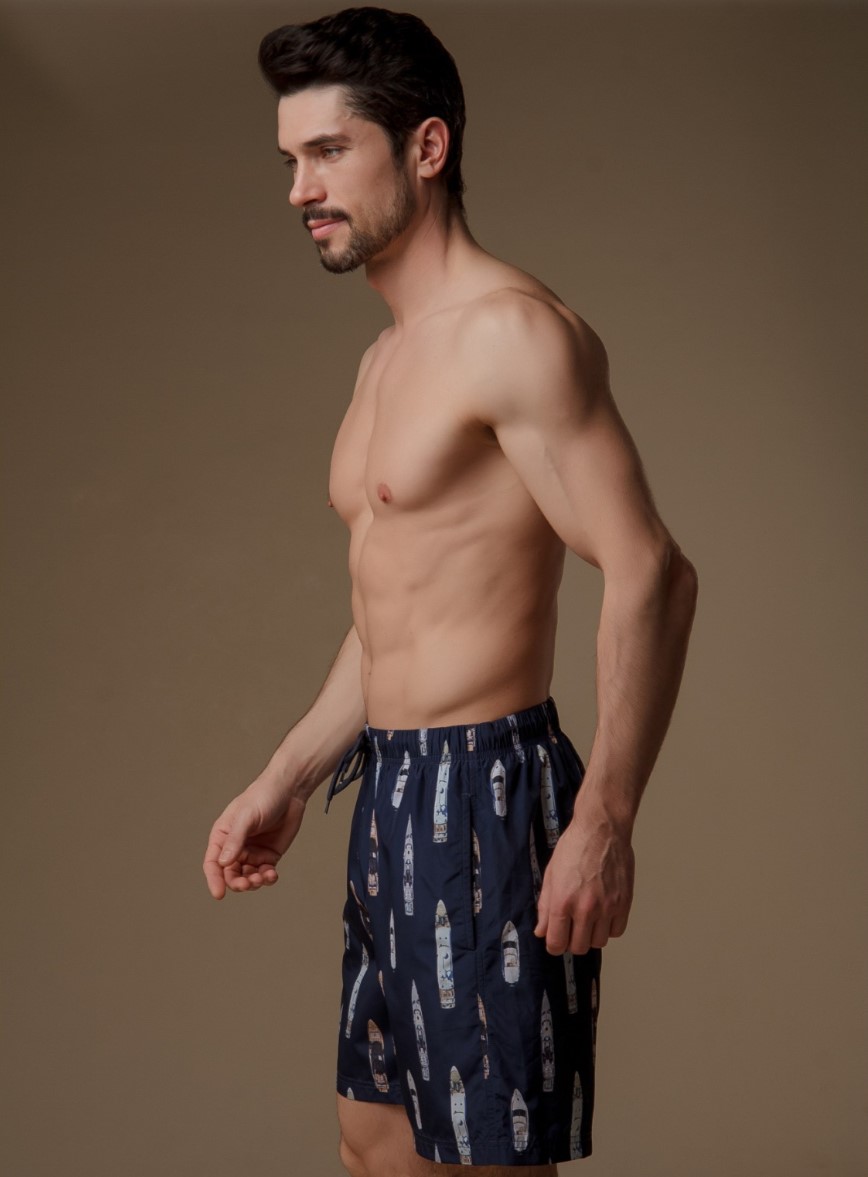 Мужские пляжные шорты из полиэстера быстро высыхают. Шорты имеют мягкую широкую резинку, которая обеспечивает комфортную посадку на талии. На внутренней части изделия имеется вставка из сетки, благодаря которой намокшая ткань не прилипает к телу. Данная модель на завязке, что позволяет регулировать степень облегания модели к телу под личные предпочтения. По боковым швам расположены два кармана.
