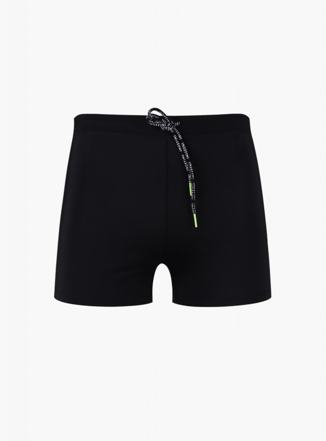 Мужские плавки от торговой марки Индефини. Плавки-боксеры из полиамида, черного цвета, облегающие, на мягкой резинке, с регулирующим шнурком.