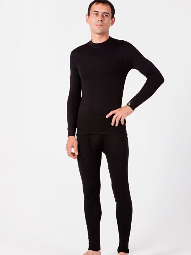 Мужской комплект: футболка с длинным рукавом, круглый вырез, эластичные манжеты, плоские швы. Длинные кальсоны, открытая мягкая резинка, эластичные манжеты, плоские швы.