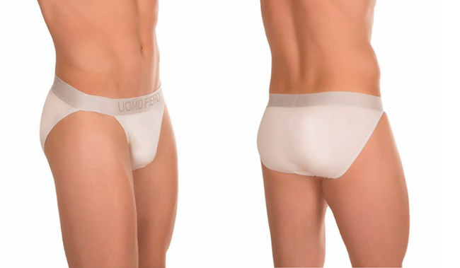 Мужские трусы, модель танга из однотонного хлопка с серебристой, широкой резинкой на поясе. На резинке фирменный принт.