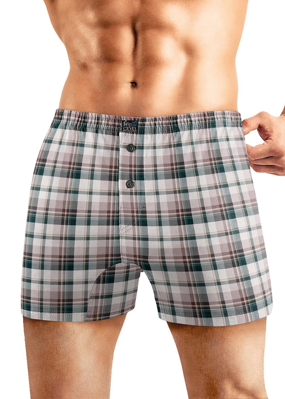 Боксеры комфортной посадки с функциональным гульфиком выполнены из оригинального полотна в стильную клетку. Трусы дополнены пуговицами и имиджевым логотипом.