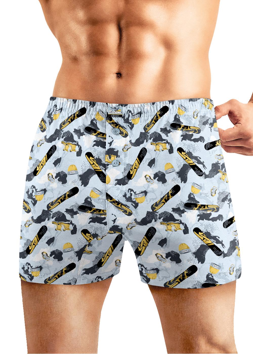 Боксеры комфортной посадки выполнены из оригинального полотна в авторскую набивку. Трусы дополнены пуговицами и жаккардовым логотипом.