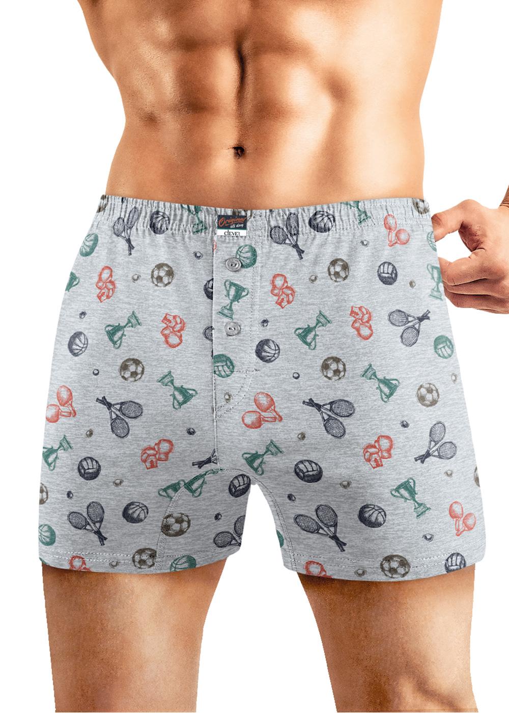 Боксеры комфортной посадки выполнены из оригинального полотна в в авторскую графику. Трусы дополнены пуговицами и жаккардовым логотипом.