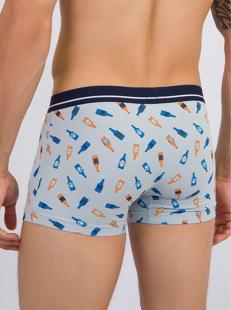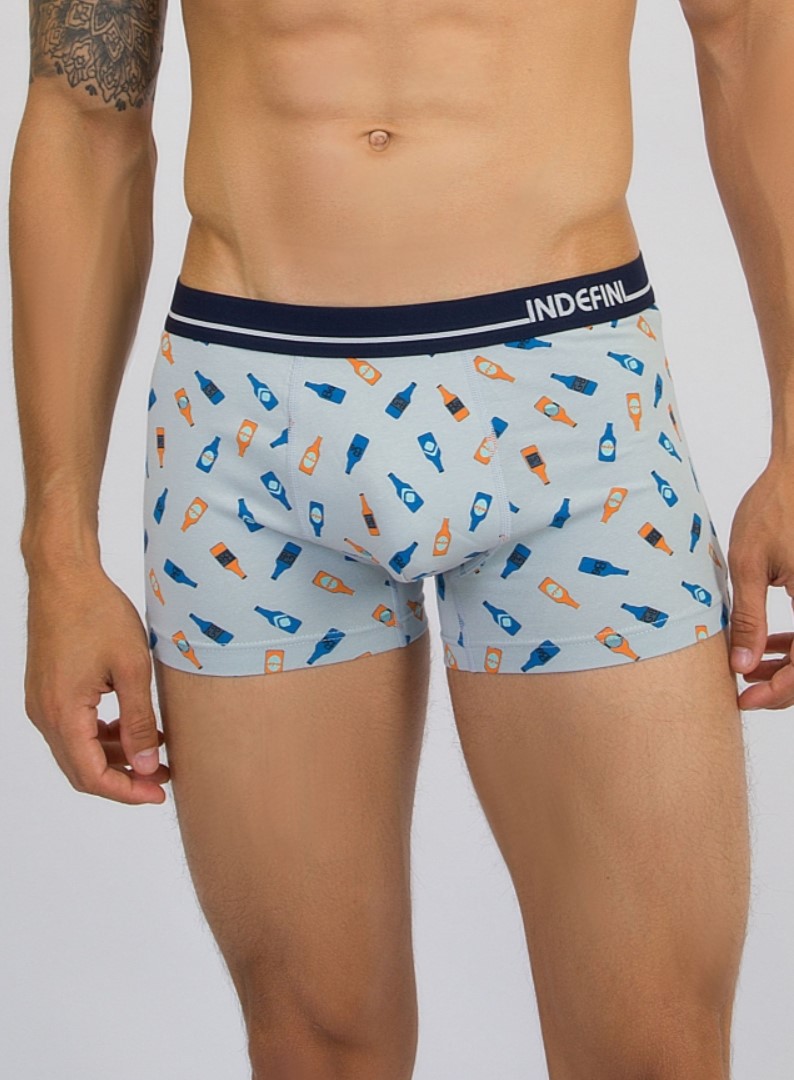 Мужские трусы от торговой марки Индефини. Трусы-боксеры из хлопка, серо-зеленого цвета, с принтом, на мягкой резинке.