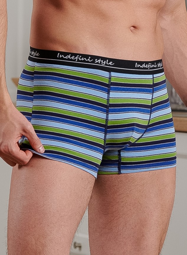 Мужские трусы от торговой марки Индефини. Трусы-боксеры из хлопка, мультиколор, с принтом в полоску, на мягкой резинке.