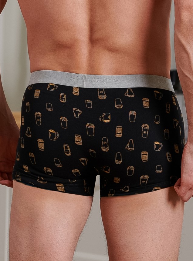 Мужские трусы от торговой марки Индефини. Трусы-боксеры из хлопка, черного цвета с принтом, на мягкой резинке, средней посадки.