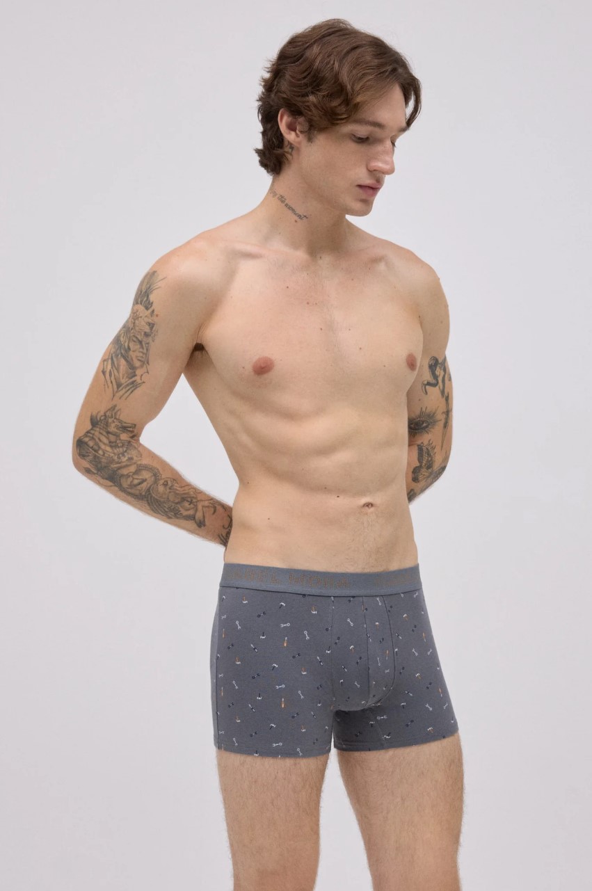 2 пары боксёров с принтом от Ysabel Mora, изготовленные из натурального хлопка с добавлением эластана для дополнительного комфорта. На одном боксерах принт с изображением инструментов, на другом — с изображением напитков. Эластичный пояс с логотипом бренда придаёт изделию современный и оригинальный вид.