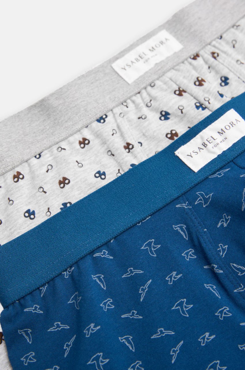 Набор из 2 боксёров с принтом из натурального хлопка с добавлением эластана для оптимального комфорта. Каждая пара трусов отличается цветом и принтом, что придаёт вашему гардеробу разнообразие и индивидуальность.