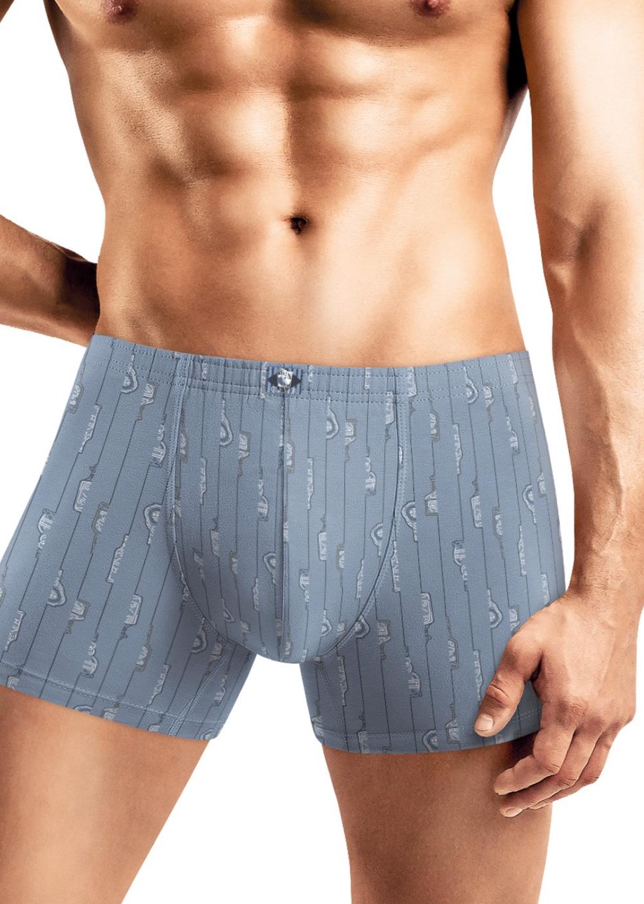 Шорты удлиненные комфортной посадки выполнены из оригинального полотна в дизайнерскую графику. Трусы дополнены жаккардовым логотипом.