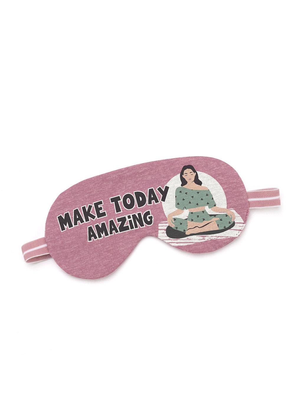 Маска для сна из трикотажного полотна дополнена принтом. Жаккардовая резинка сзади позволяет надеть маску на любой охват головы.