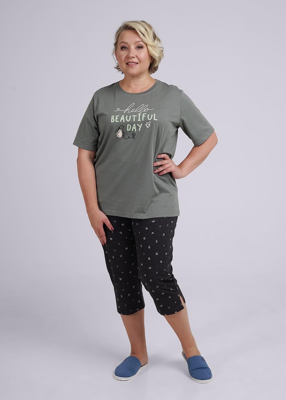 Бриджи для дома из хлопкового трикотажного полотна, с притачным поясом на резинке. Боковые карманы с отрезным бочком. Внизу боковые разрезы.
