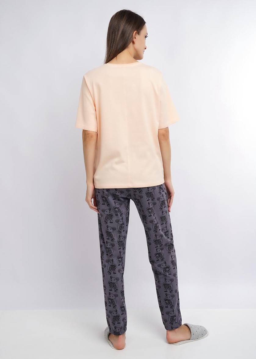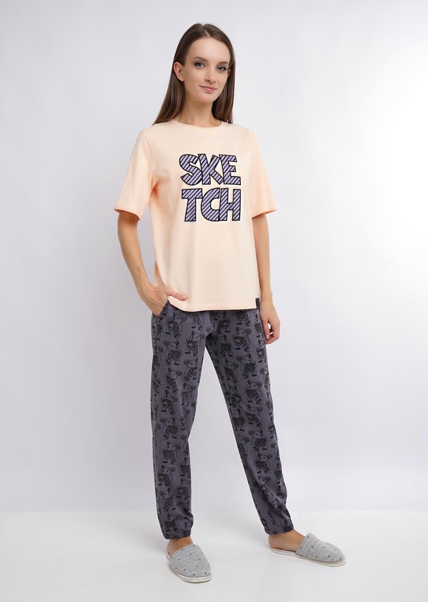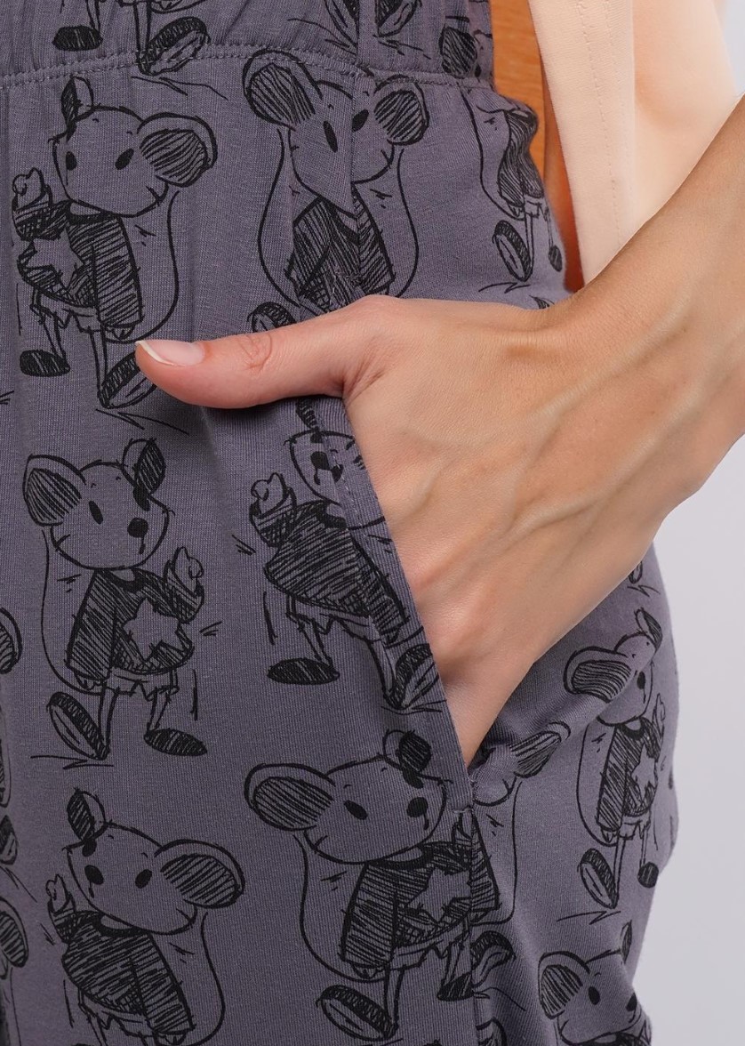 Домашние брюки из трикотажного полотна. Пояс на внутренней резинке. По бокам карманы. Снизу на резинке.