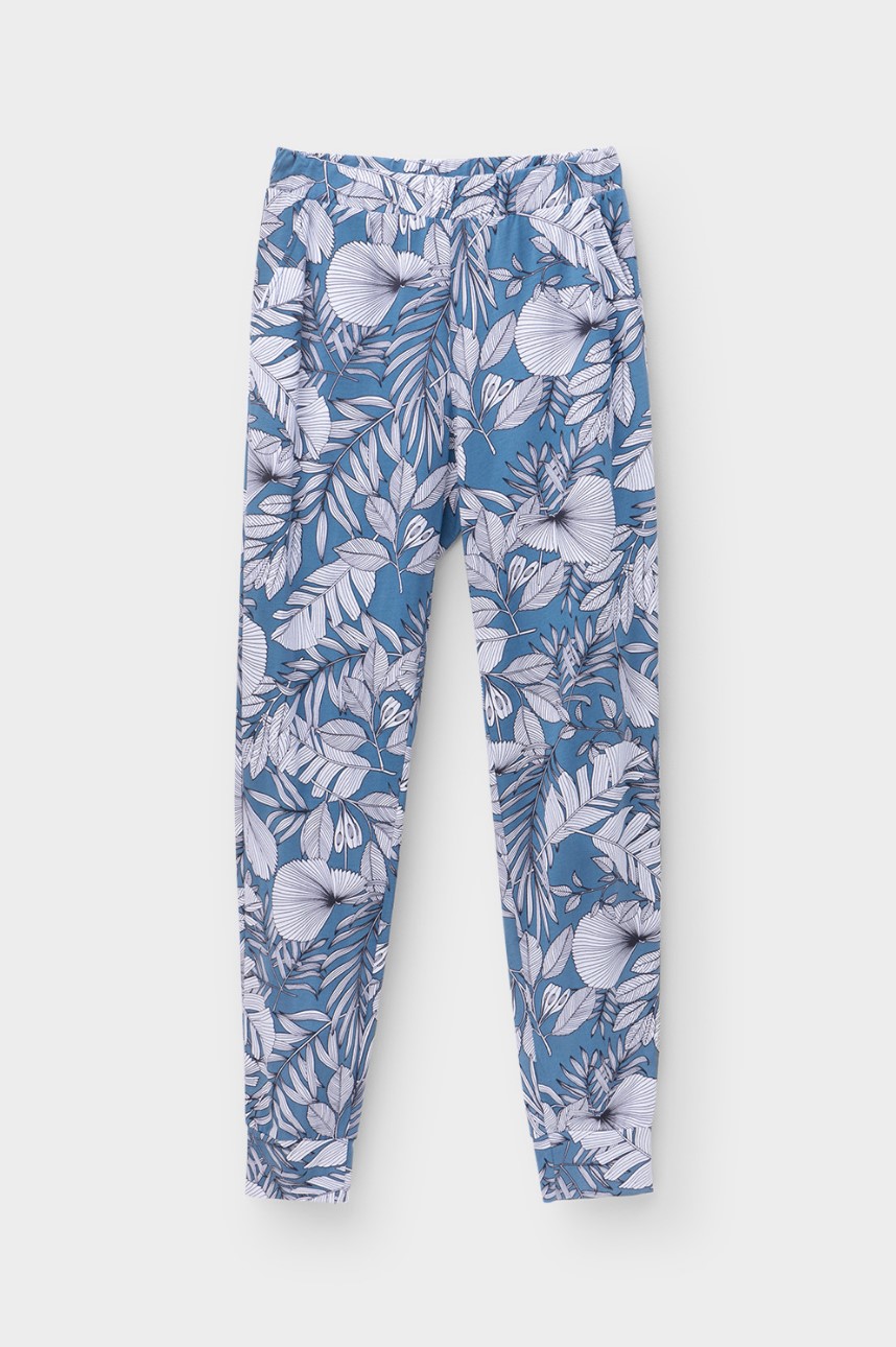 Комфортные брюки на широких манжетах и с карманами по бокам из 100% хлопка. Мягкий пояс на резинке.