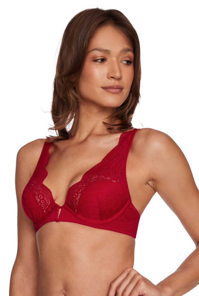 Кружевной бюстгальтер с чашкой на тонком поролоне на кости. Для глубоких декольте. Несъемные регулируемые бретели. Основная ткань: 84% полиамид, 16% эластан Кружево: 89% полиамид, 11% эластан Сетка: 94% полиамид, 6% эластан.