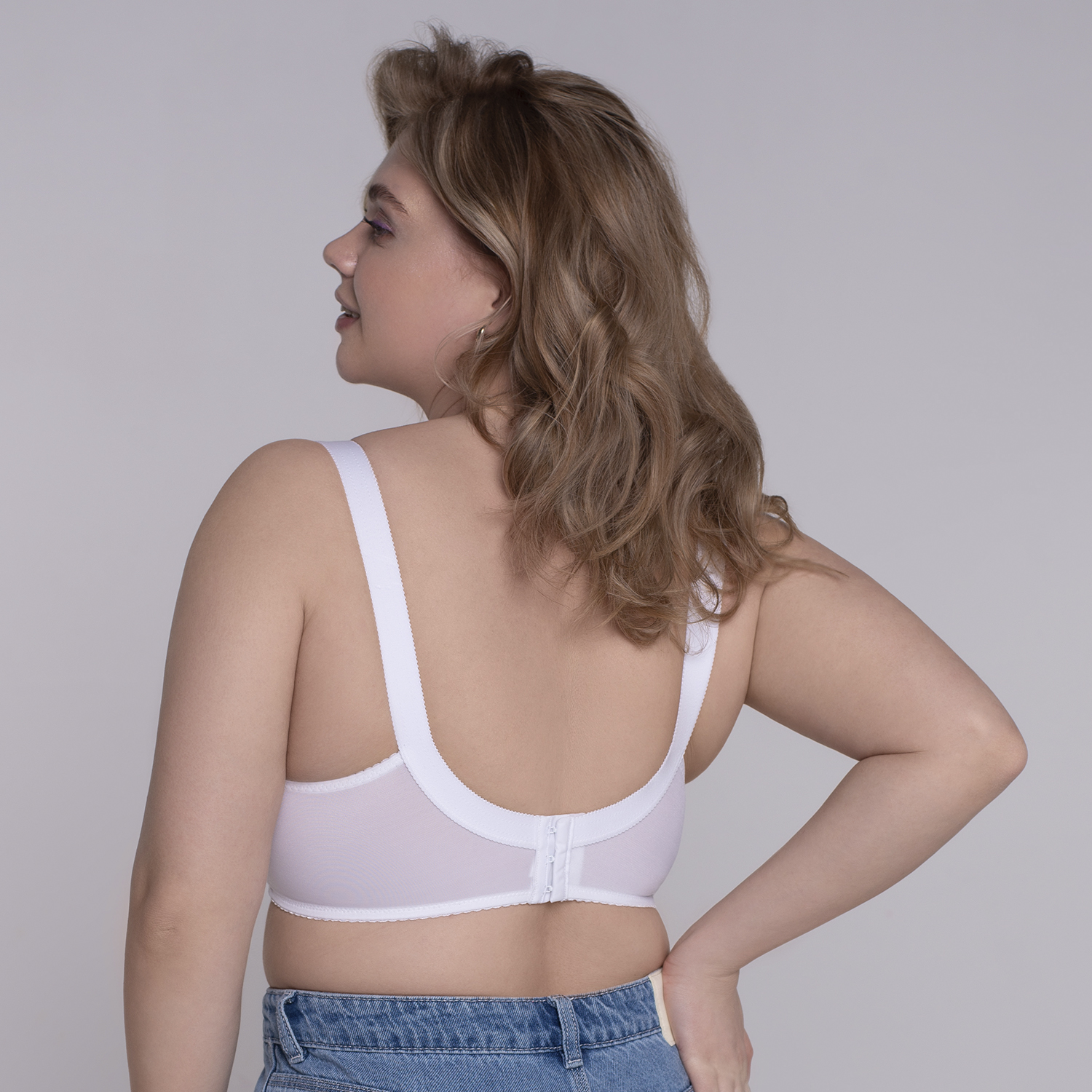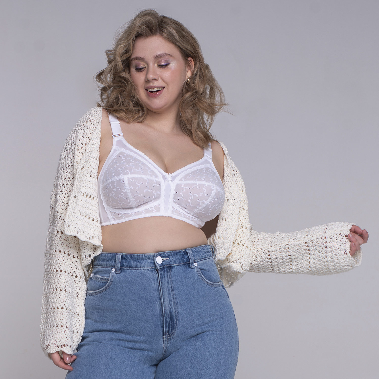 Классический бюстгальтер для длительной повседневной носки, особо рекомендован для активного времяпрепровождения. Чашка мягкая, из вышитого х/б полотна, без каркасов, обладает повышенной воздухопроницаемостью. Боковая деталь бюстгальтера усилена стержнями. Бретели несъемные, регулируются по длине.