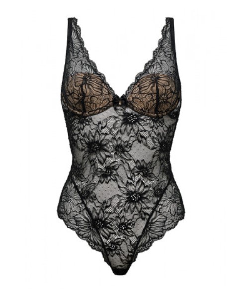 Боди с формованной чашкой Latina на косточках, без эффекта пуш-ап. Регулируемые бретели. Застежка в два ряда на три позиции. Застежка на ластовице в три крючка на две позиции. Чашка Latina. Выполнено из кружевного полотна и кружева. Коллекция "Lea"