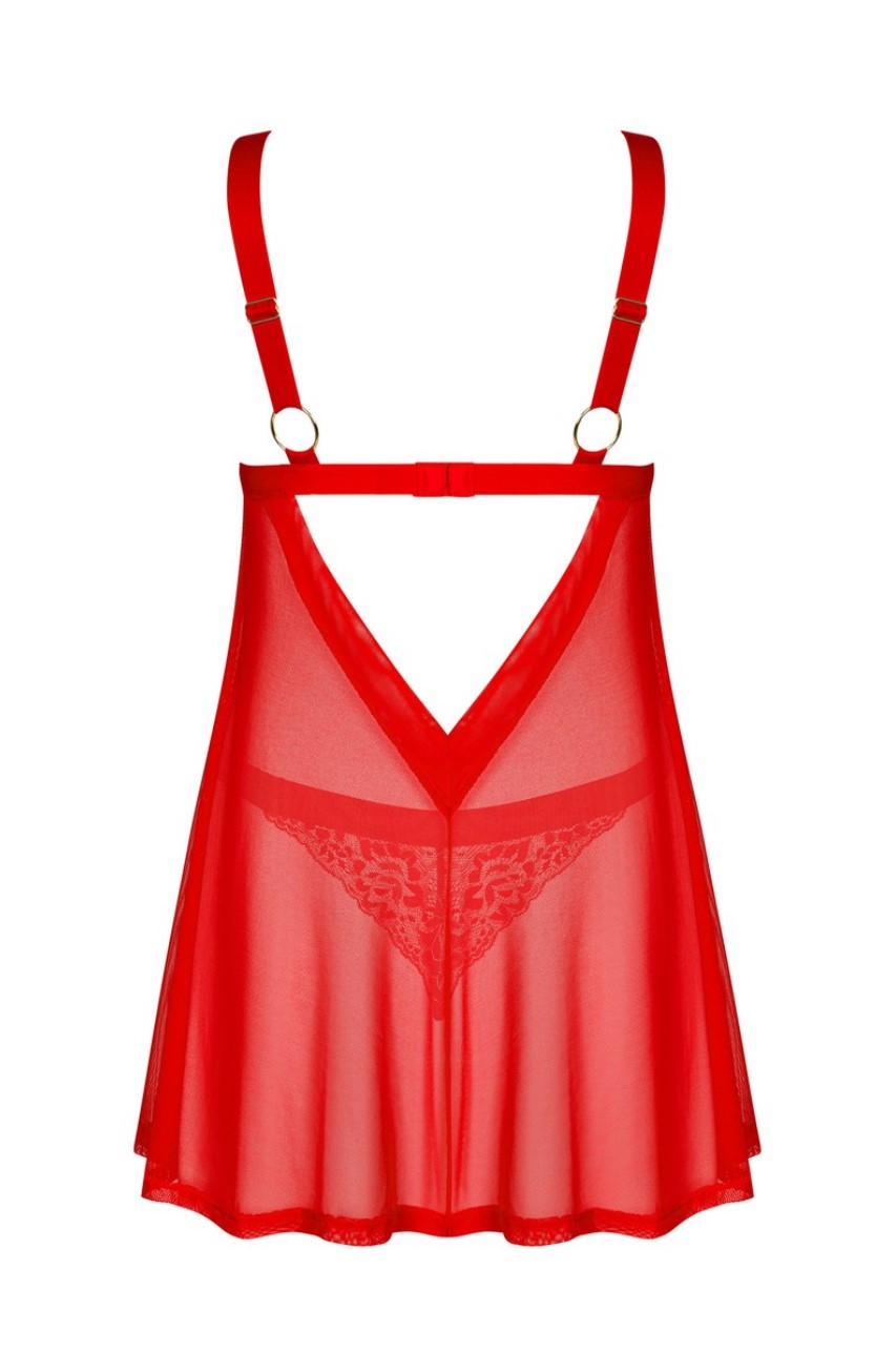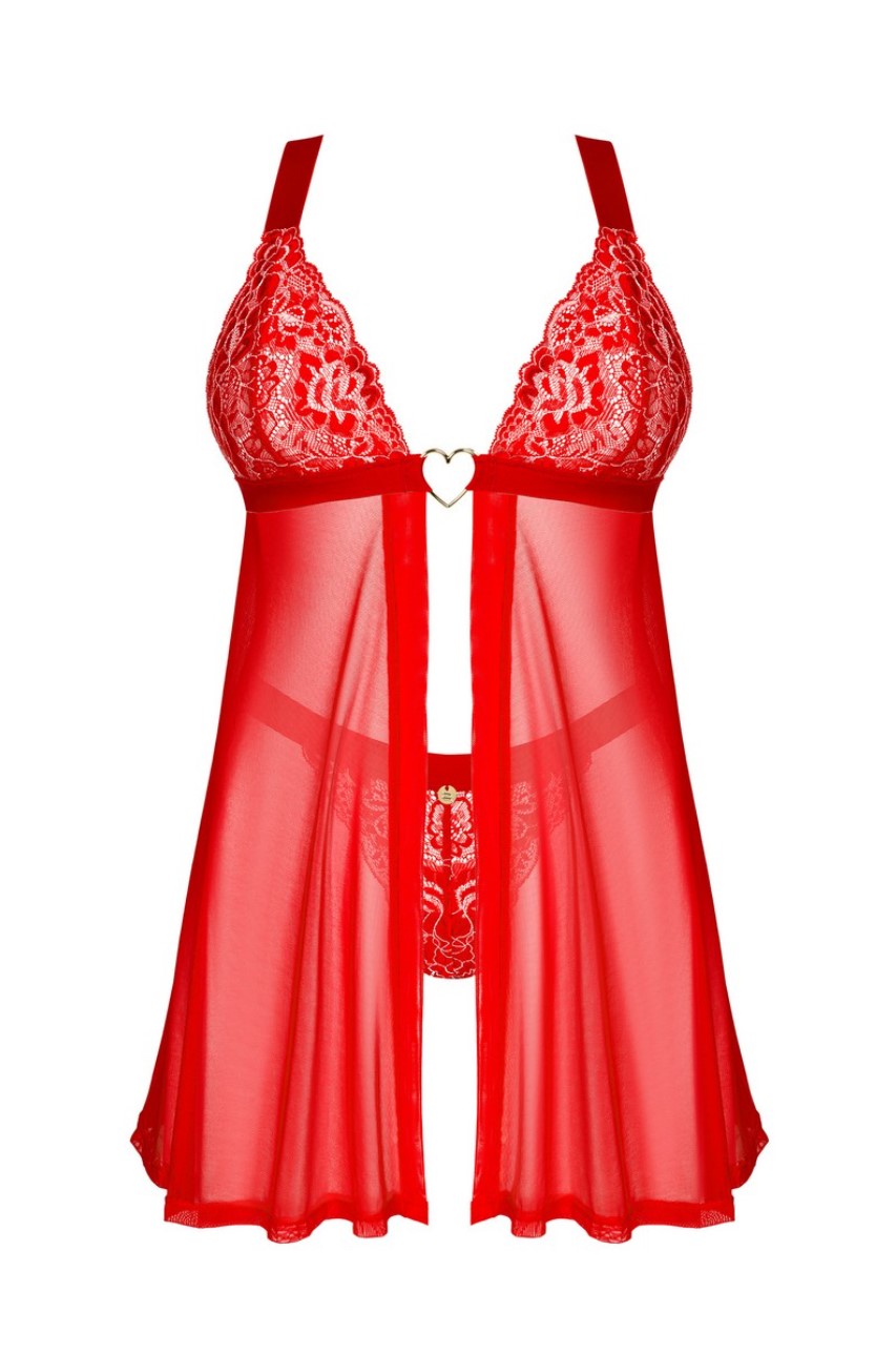Красные стринги и ночная сорочка, регулируемые бретельки и многоступенчатое застегивание – гарантия идеальной посадки. Металлическое сердечко золотистого цвета - привлекающая внимание деталь. Гибкая, мягкая на ощупь ткань – обеспечивает комфорт.