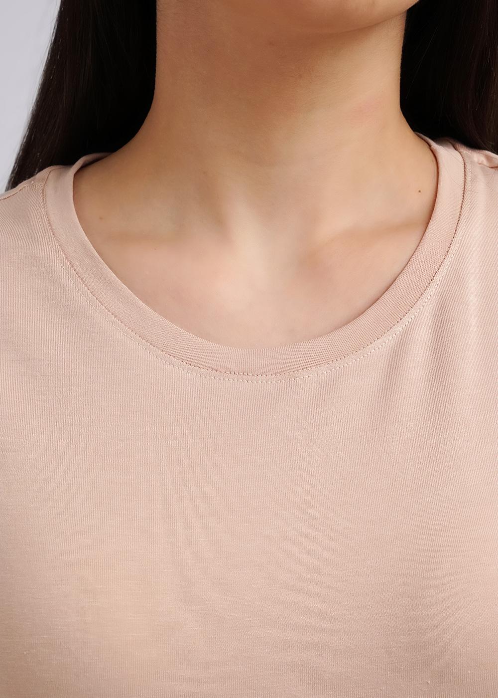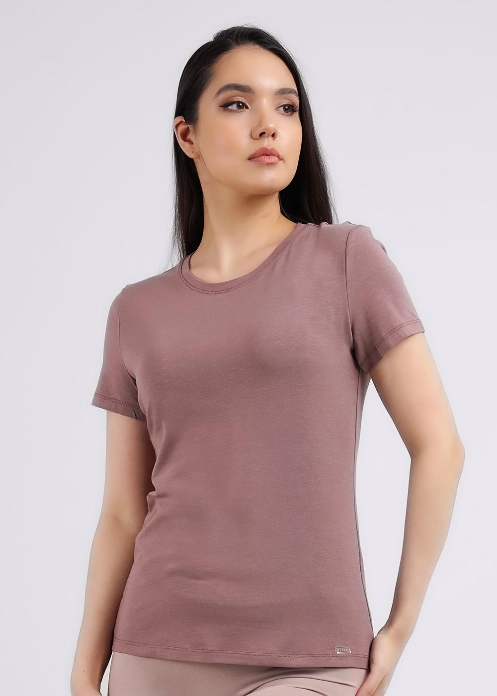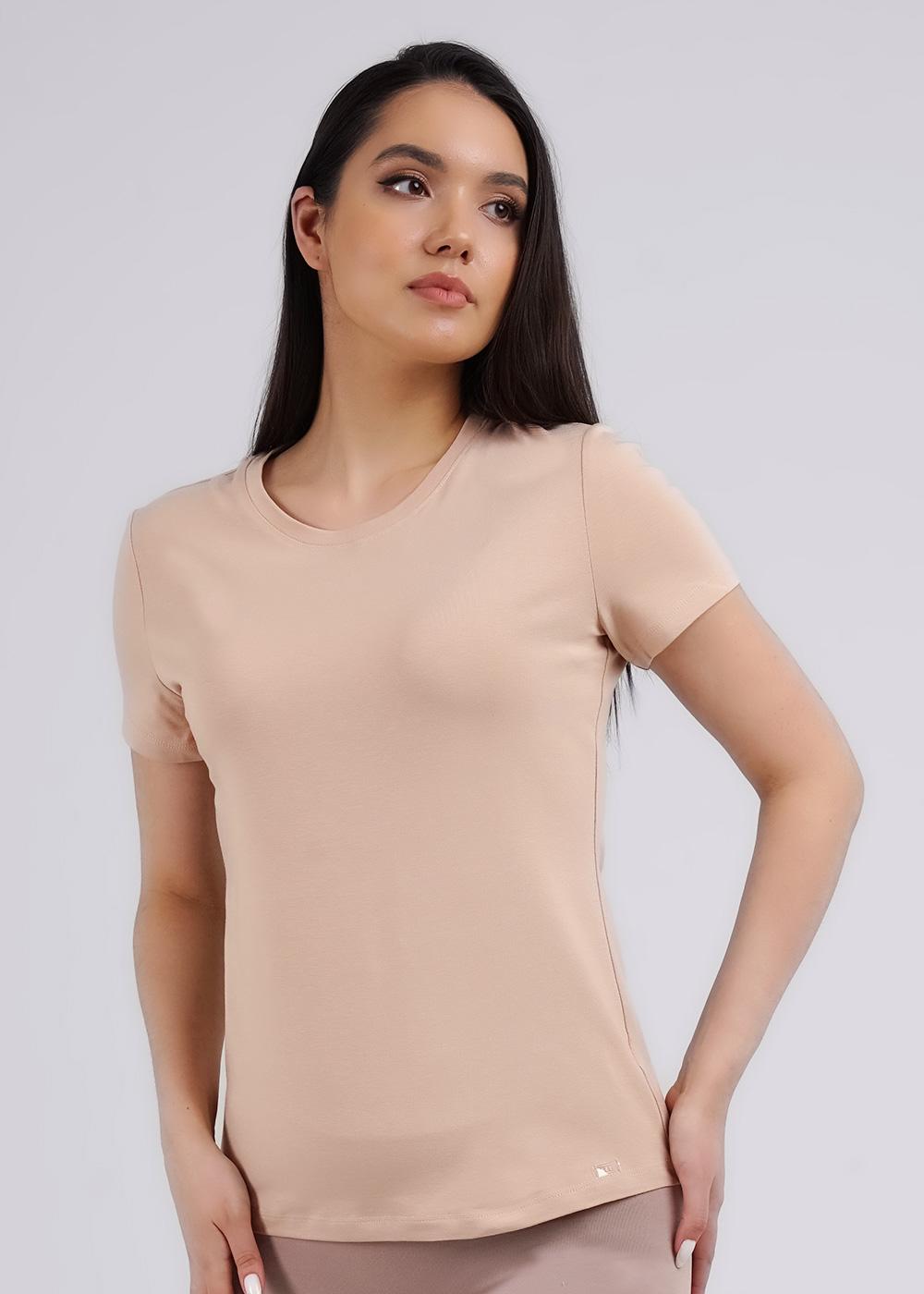 Футболка женская из эластичного полотна с хлопком и модалом в составе. Короткий рукав. Круглый вырез горловины. Фирменный жаккардовый логотип.