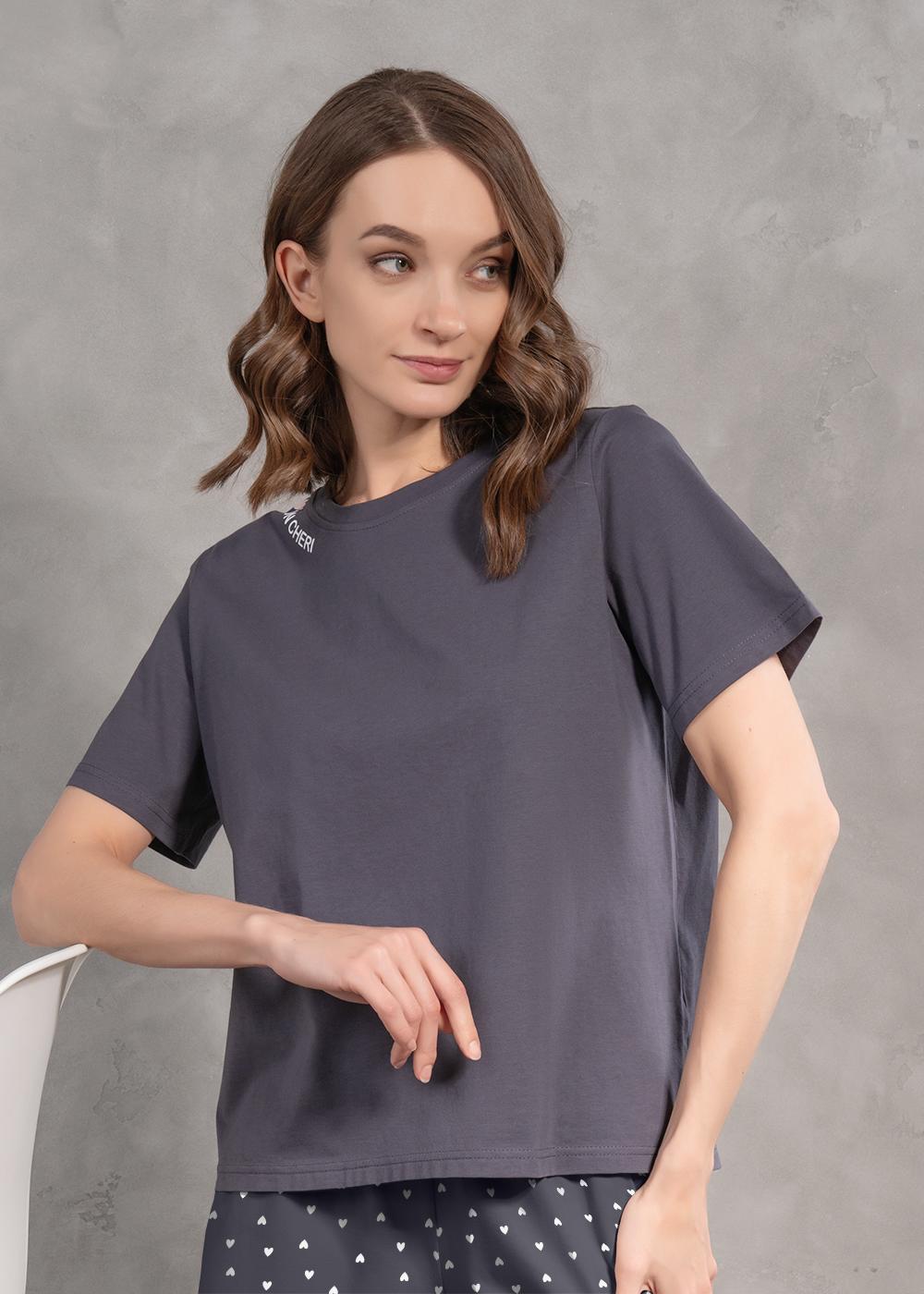 Женская домашняя футболка прямого слуэта из плотного хлопка, рукав слегка спущенный, спереди выполнен принт.