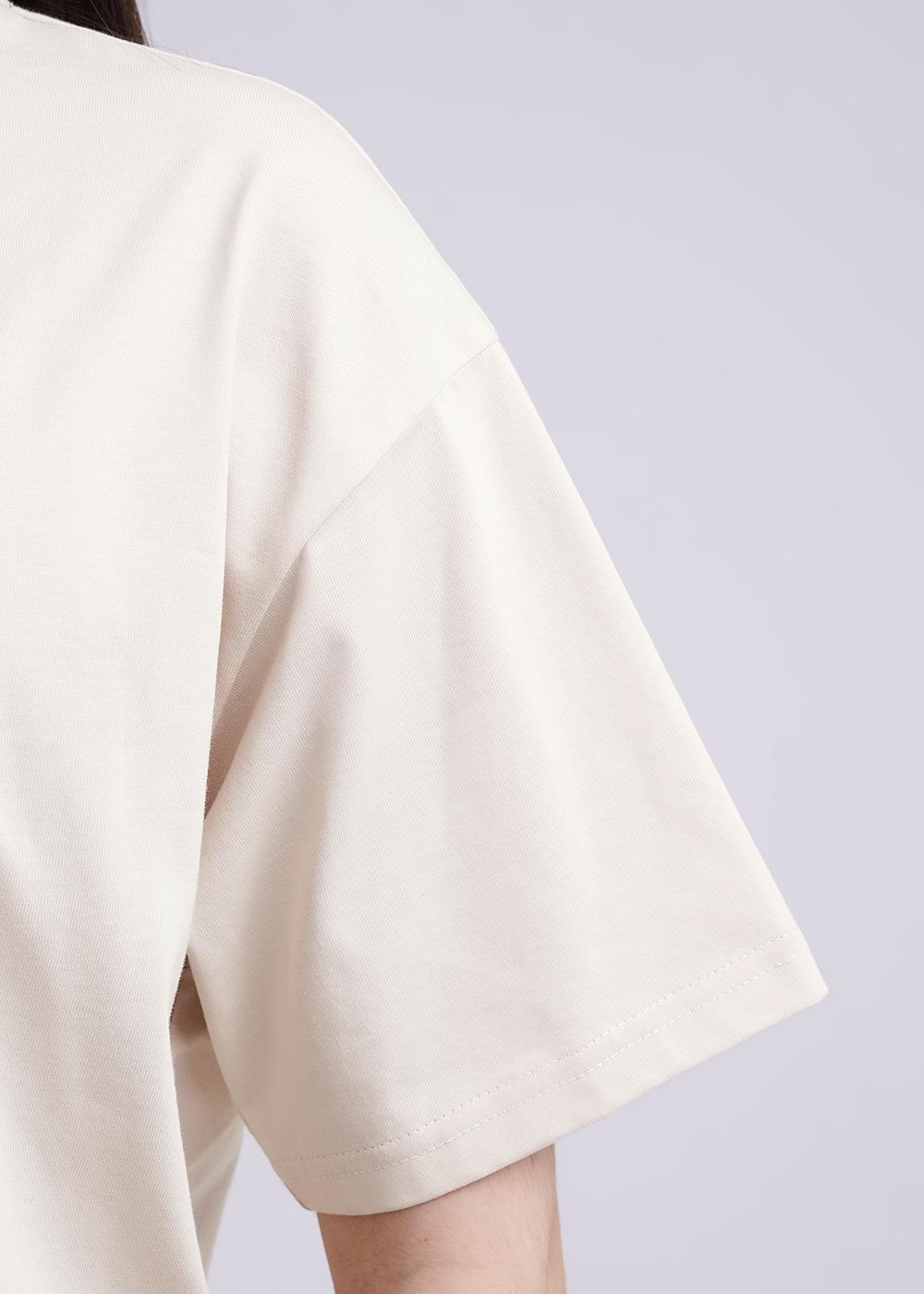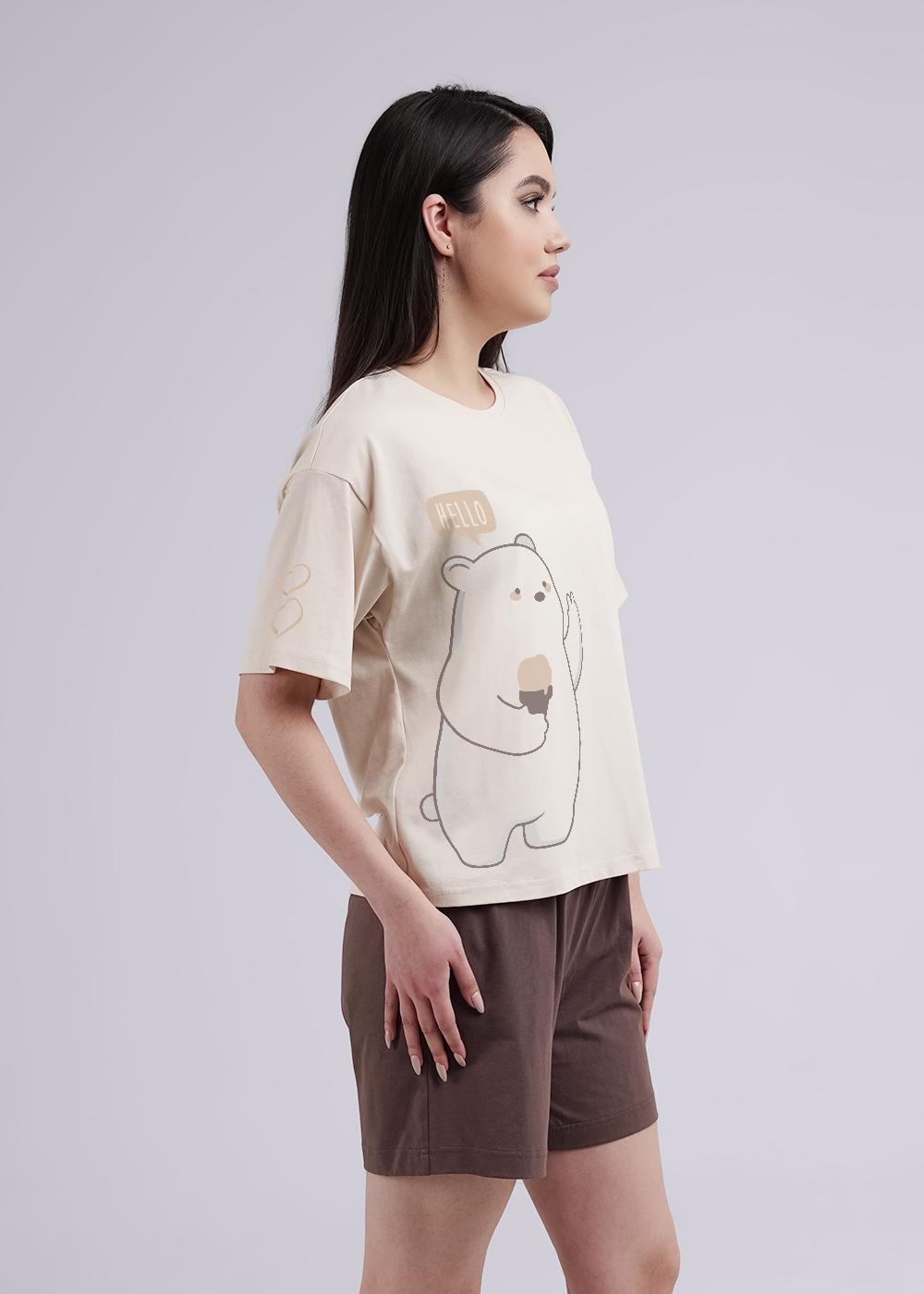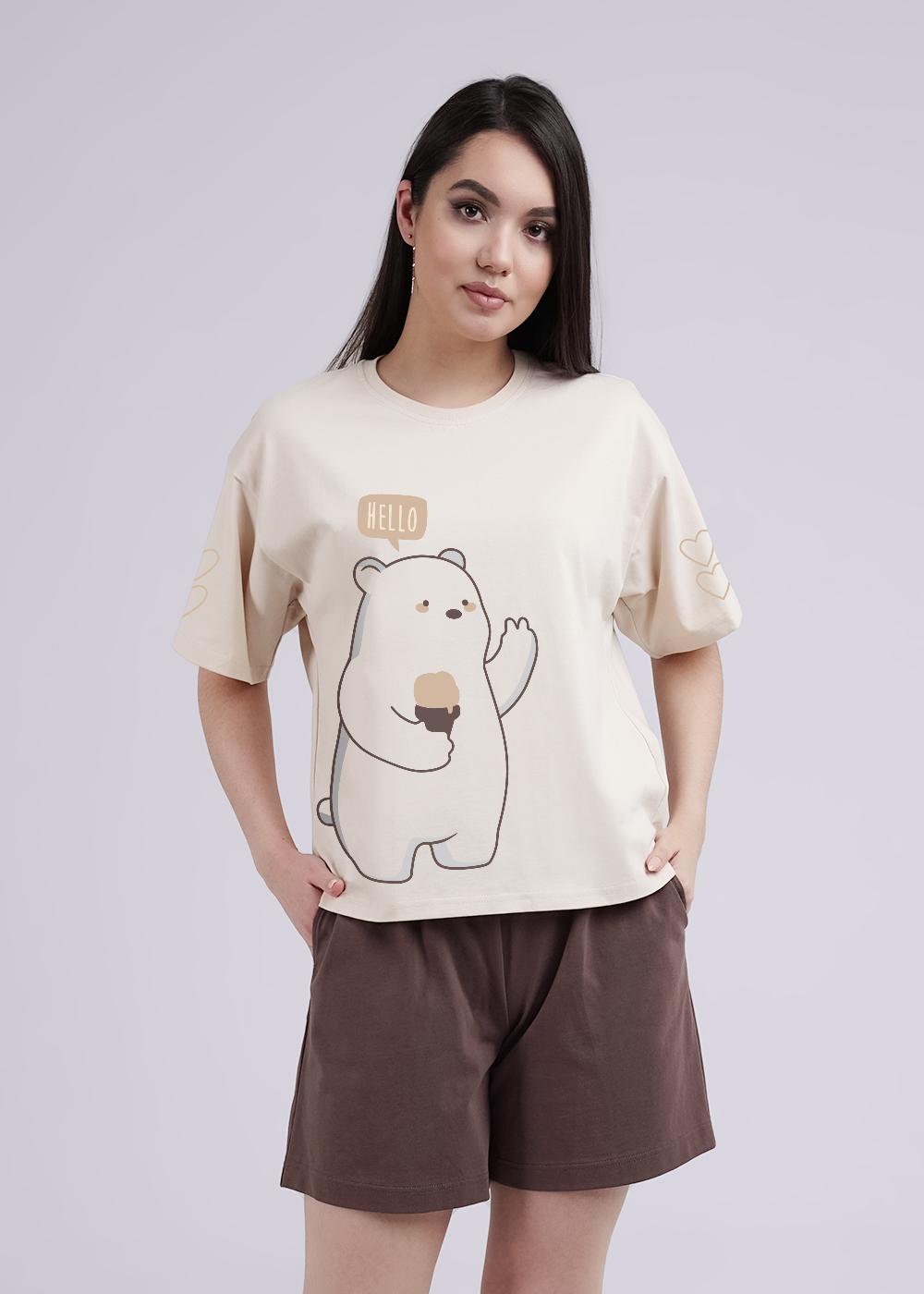 Футболка для дома из трикотажного полотна, свободного кроя. Короткий втачной рукав. Округлая горловина с обтачкой. Спереди на полочке принт.