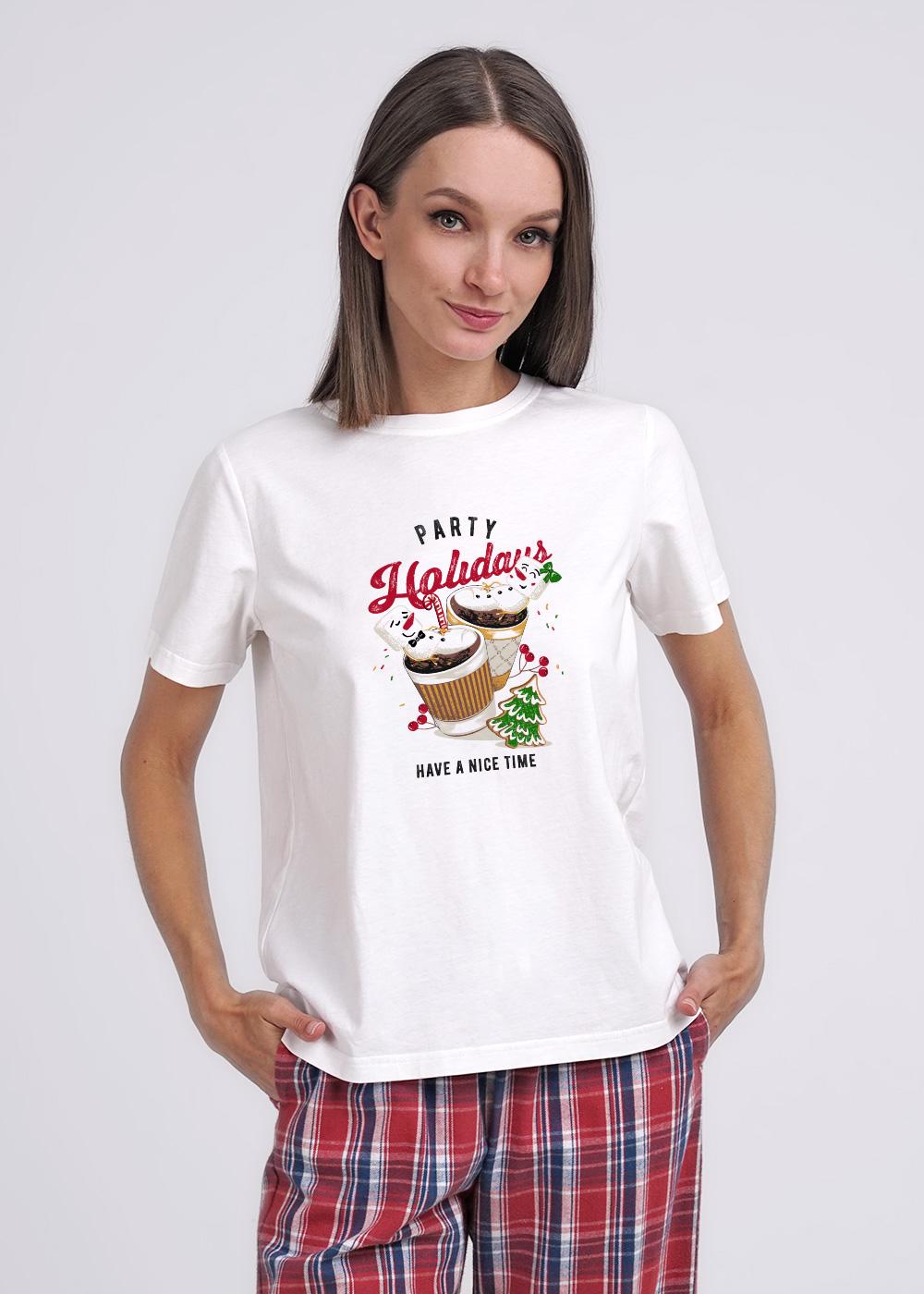 Футболка прямого силуэта из хлопкого трикотажного полотна. Короткий втачной рукав. Округлая горловина с обтачкой. Спереди принт.