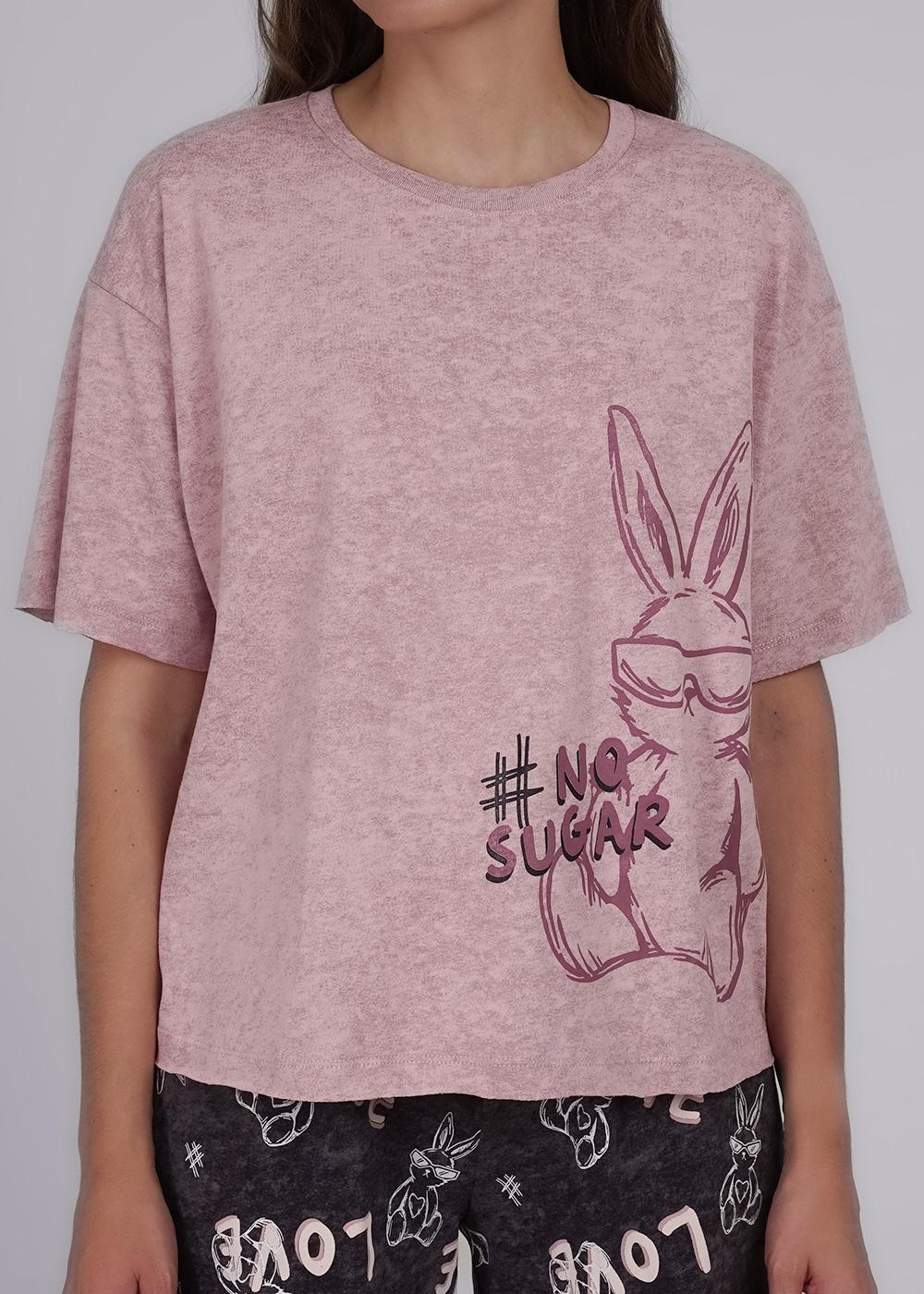Футболка из хлопкового трикотажного полотна,прямого силуэта. Округлая горловина с обтачкой. Короткий рукав со спущенной линией плеча. Спереди и по рукаву принт. По низу рукава и изделия подгибка с открытым срезом.